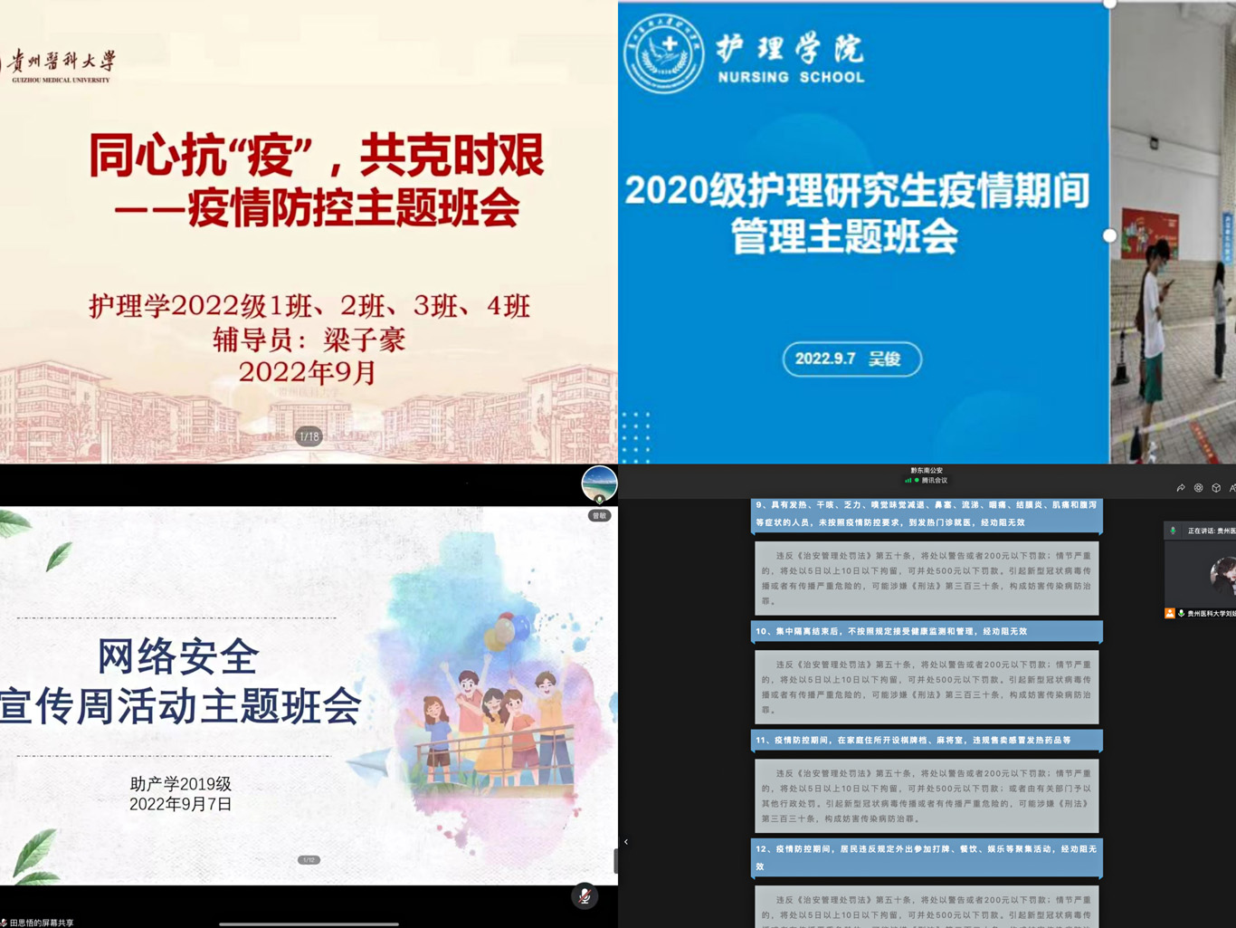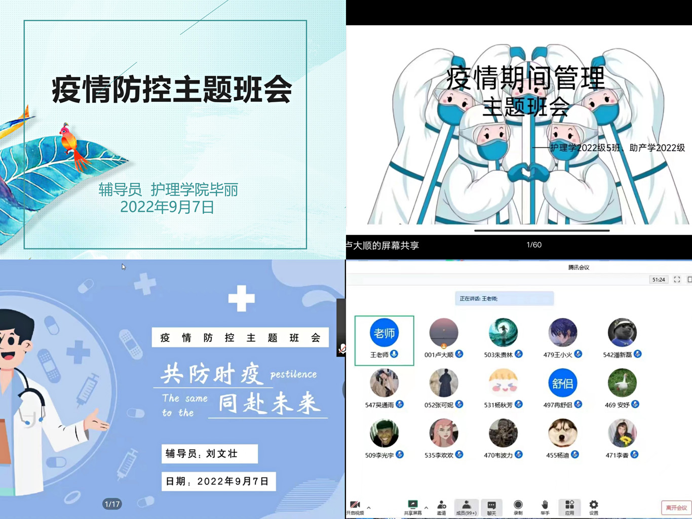 9月7日,为有效防范疫情输入校园,确保广大师生身体健康和校园安全稳定,做好公司疫情防控工作,williamhill中国官网入口全体研究生及本科生班级召开了疫情防控主题班会,会议由各班辅导员主持。