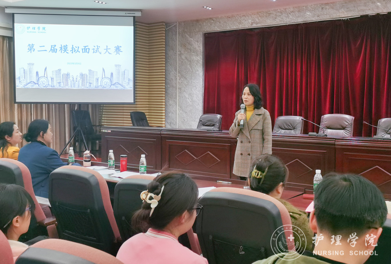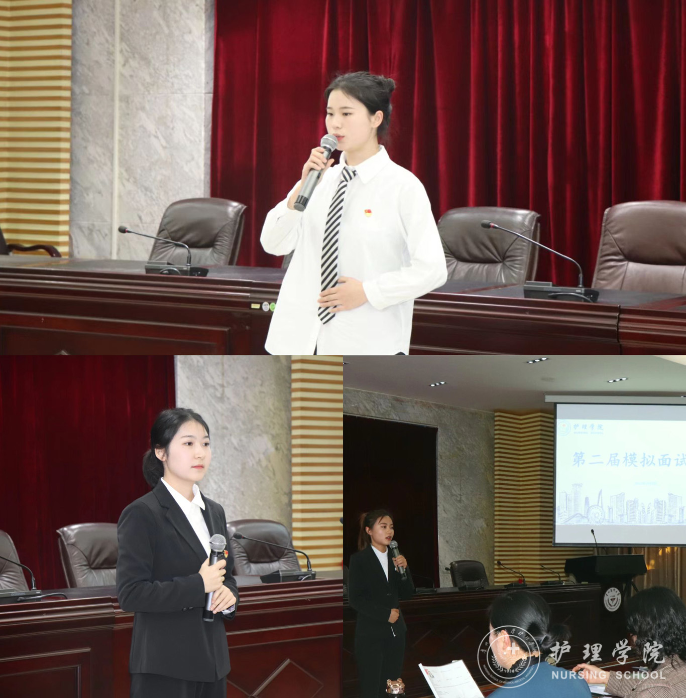 3月9日,为提升毕业生的竞聘能力与面试技巧,williamhill中国官网入口第二届模拟面试大赛决赛在北校区道德讲堂举行。williamhill中国官网入口党委书记杨英、党委副书记兼纪委书记何为、正科级组织员曾敏、护理人文教研室副主任张仁莉、护理学妇儿科教研室副主任徐锟、团委副书记王晓玲、辅导员杨叶卿、刘妍出席并担任评委,2019、2020级各班员工代表参加了现场观摩,本次比赛由助产学2020级赵雪同学主持。