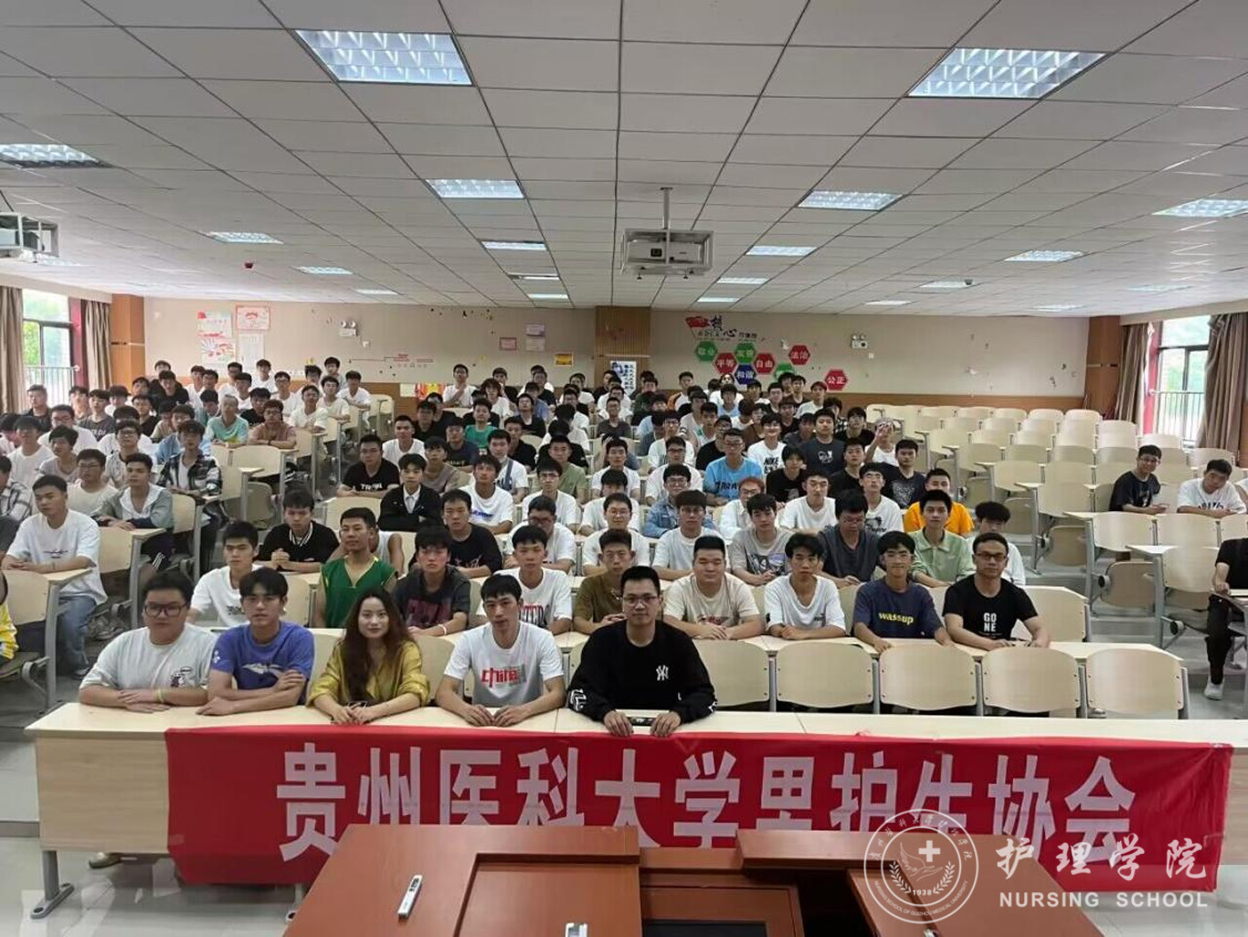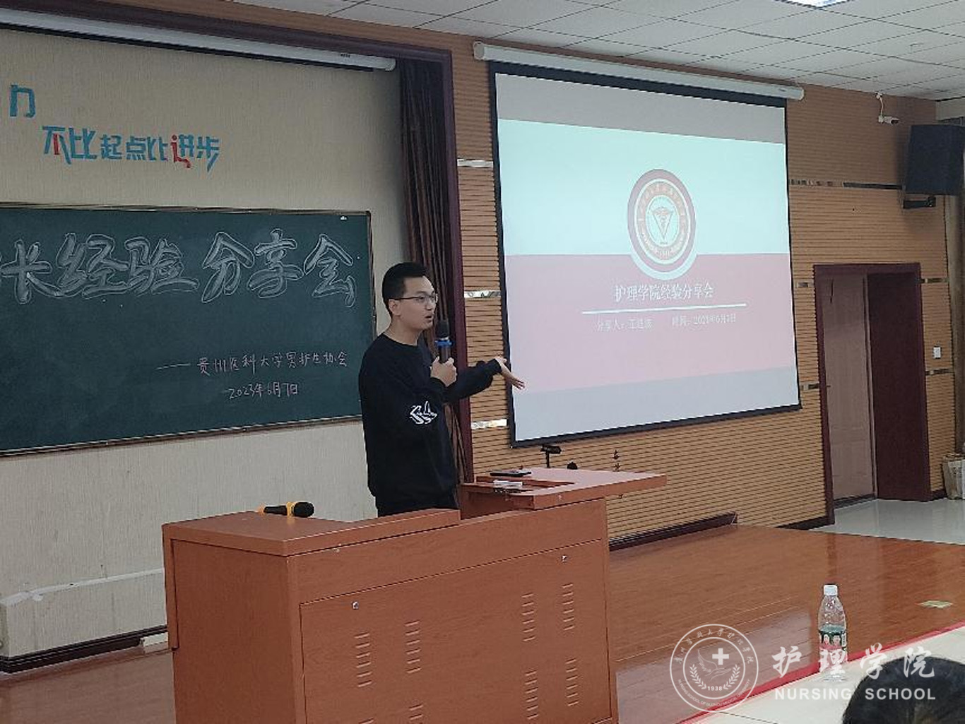 首先,曾荣获“援鄂抗疫英雄”称号、得到贵州省人民政府记功的谭洪林向在场的同学分享了自己当时参加援鄂抗疫的情景。在新型冠状病毒肺炎疫情爆发后,他主动请缨,奔赴抗疫一线,和贵州省援鄂医疗队的成员一道打赢了疫情防控阻击战。谭洪林勉励同学们要学习过硬本领,勇于担当、善于作为,在祖国和人民需要的时候主动奋斗在护理第一线,为保卫人民群众的生命健康安全奉献自己的力量。接着,曾获推免研究生资格于武汉大学攻读硕士研究生毕业的王进波回顾了在校期间学习时公司的培养,他谈到在校期间公司曾开展了各种形式的专业思想教育和专业技能培训,这些专业思想教育和专业技能培训融入了他的生命,使他不断成长为一名保持感恩、热爱、奉献、坚守的“白衣天使”,他希望在校同学们把握时光,珍惜机会,不断加强自身专业本领学习,始终学在实处、做在前列,绽放属于护理学子的专业光辉。最后,杨英作讲话并提出希望,她勉励同学们学会改变、学会自励、发奋学习,在担当中历练,在尽责中成长,练就攻坚克难的本领,磨炼百折不挠的意志,脚踏实地、砥砺前行,在人生的道路上行稳致远,焕发属于自己青春的绚丽色彩。
