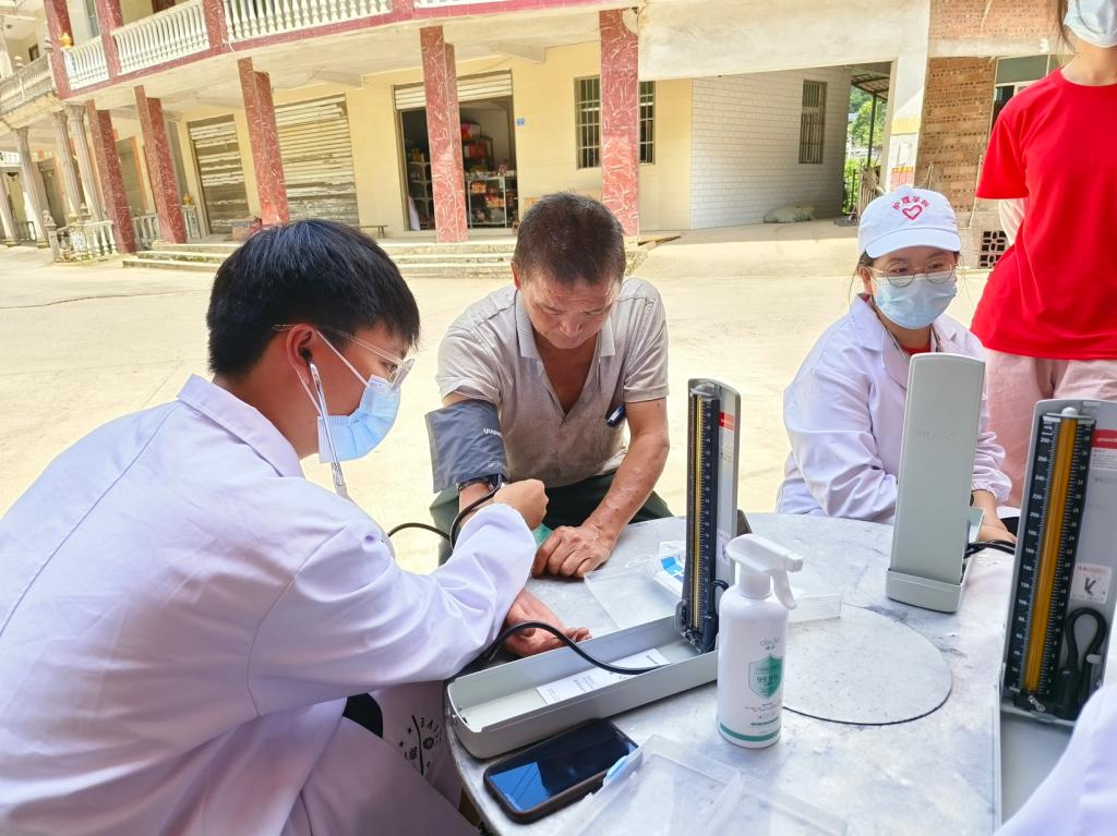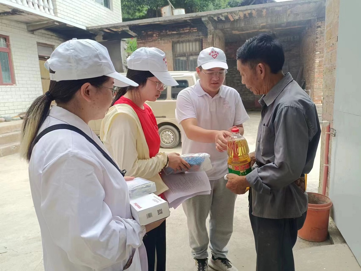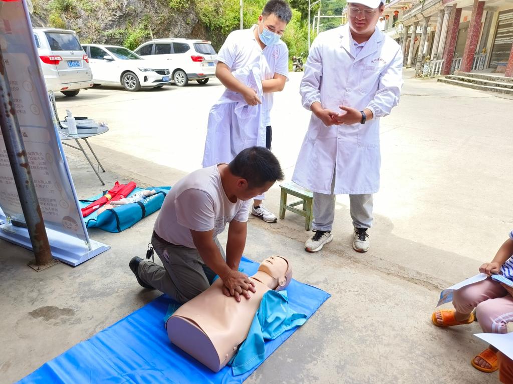 活动过程中,志愿队分为三组前往10位孤寡老人家中进行了慰问,队员们给孤寡老人送去了爱心物资和温暖的问候,并为老人测量血压,进行了用药指导;接着,志愿者们在村里开展了健康义诊、关爱留守儿童、急救知识培训和溺水宣讲,通过一系列急救知识的讲解提高了村民们的急救技能,志愿者耐心的陪伴留守儿童,让他们感受到了来自贵医学子的关怀和温暖。