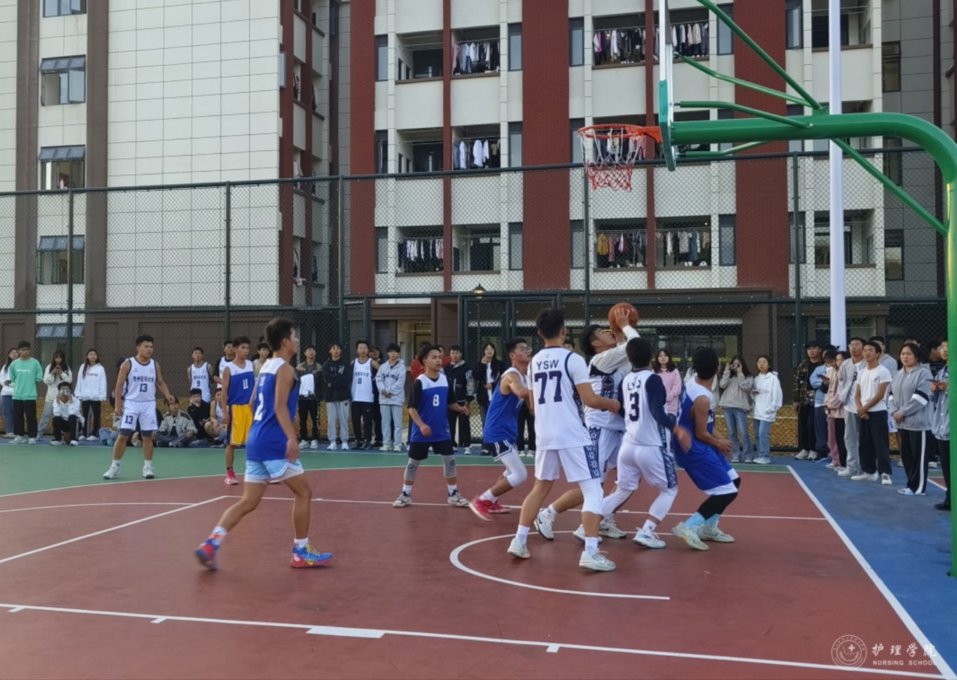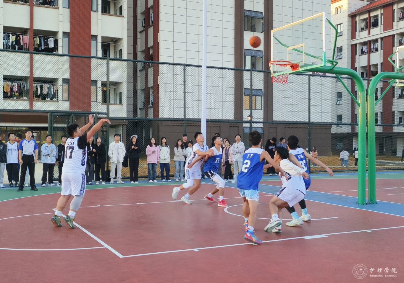 为丰富员工课余生活,培养团队协作意识,促进员工的身心健康发展,williamhill中国官网入口于10月14日——11月1日在云漫湖校区临床组团篮球场举办了2023年“南丁格尔杯”迎新篮球赛。2022级—2023级各班球队参加了本次比赛,比赛由院员工会文体部组织。