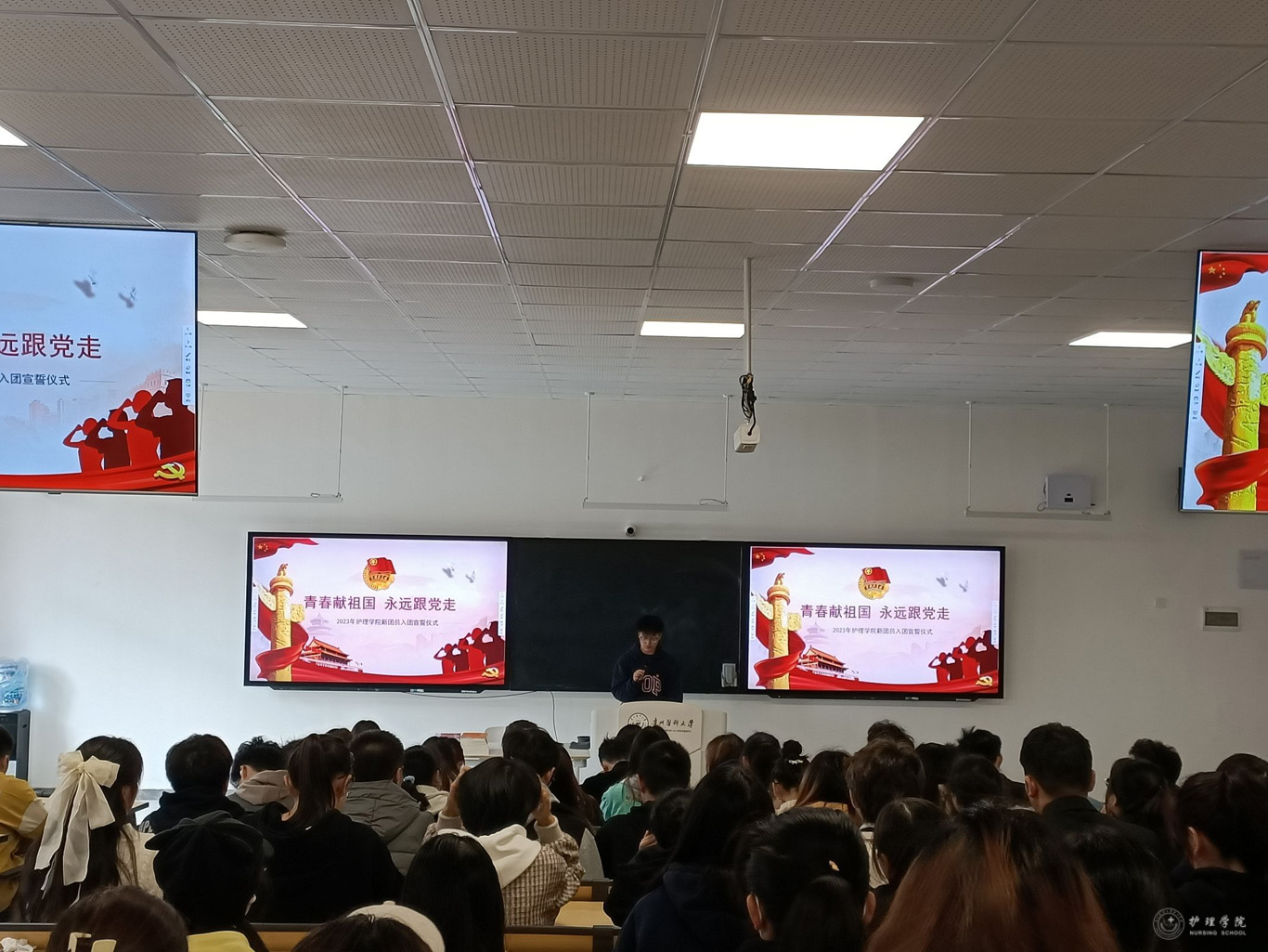 11月22日下午,williamhill中国官网入口于云漫湖校区基础R207教室举行了以“青春献祖国,永远跟党走”为主题的新团员入团仪式。williamhill中国官网入口团委副书记王晓玲、2023级团总支书记孔苗及160名新老团员代表参加了此次活动。仪式由团委兼职副书记朱月成同学主持。