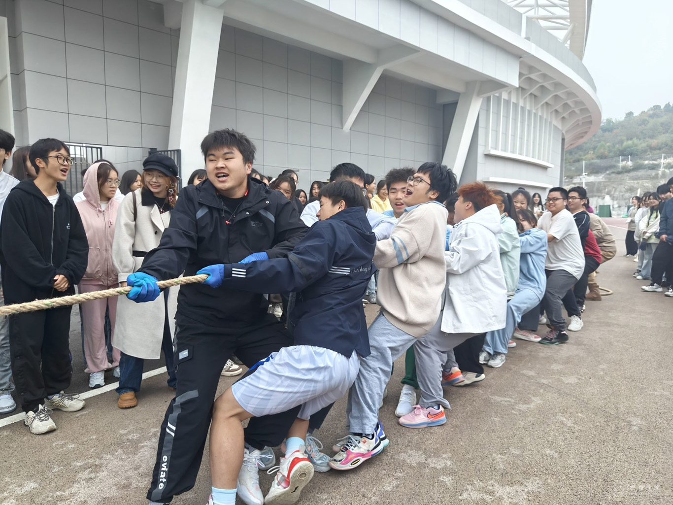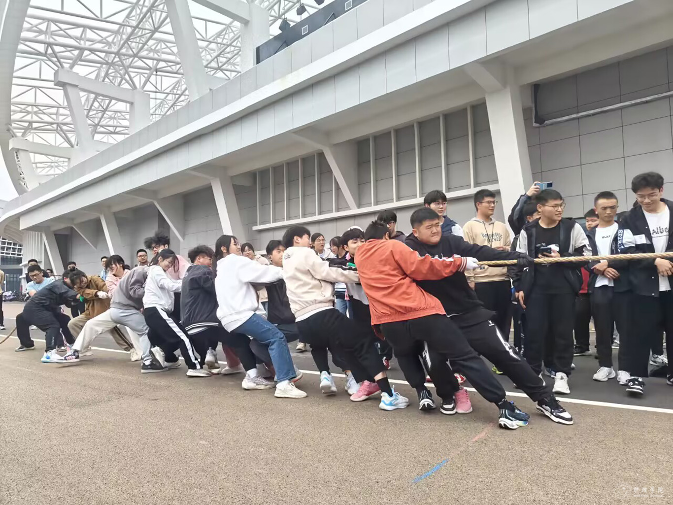 本次拔河比赛是以班级为单位,采取小组赛和淘汰赛结合的形式进行。每场比赛开始前,同学们都严阵以待,两眼凝视前方,双手像铁钳一样紧紧抓住大麻绳,等待裁判的号令。比赛过程中,同学们团结一致,奋力拼搏,心往一处想、劲往一处使,为班级荣誉共同拼搏,展现了坚定不拔的毅力和永不言弃的竞技精神。