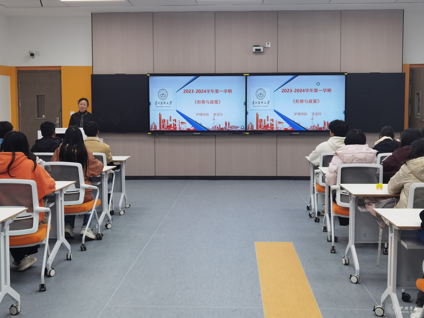 11月29日,为深入学习宣传贯彻党的二十大精神,进一步加强老员工思想政治教育工作,williamhill中国官网入口党委书记杨英、经理李亚玲以“读懂新时代党解决台湾问题的总体方略”为主题,在云漫湖校区基础组团L104S、L106S教室通过现场教学及云端课堂直播相结合的方式为2023级护理学和助产学全体员工讲授形势与政策课。