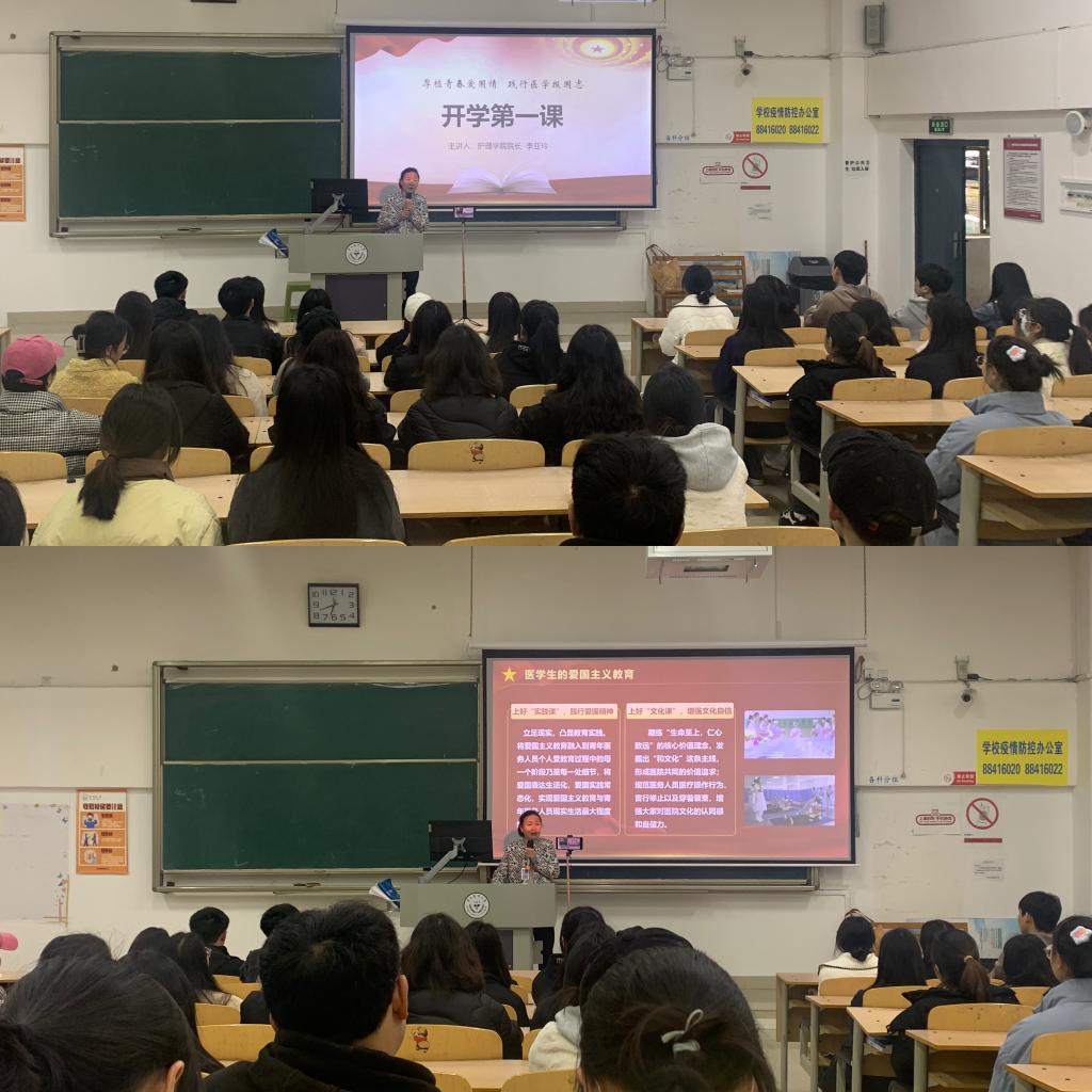 3月15日,为深入贯彻落实《中华人民共和国爱国主义教育法》,加强新时代爱国主义教育,传承和弘扬爱国主义精神,williamhill中国官网入口党委书记杨英、经理李亚玲分别于云漫湖校区临床组团R205教室、北京路校区药学楼4101教室为williamhill中国官网入口全体员工讲授“开学第一课”。各班辅导员也深入班级开展爱国教育主题班会,本次活动以线上线下的形式结合开展。
