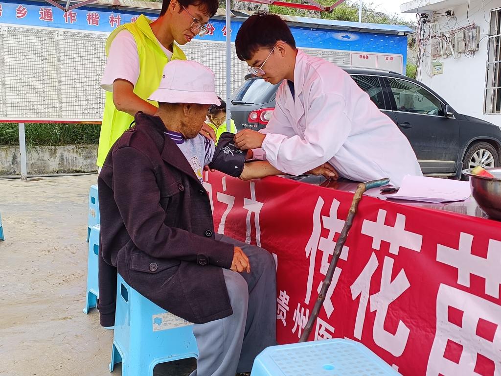 7月15日,实践队在通作楷村村委会广场上开展了爱心测血压活动。活动现场,实践队队员们积极引导当地老年人有序排队测量血压,并对高血压、糖尿病等疾病的预防和护理进行了健康宣讲。针对部分腿脚不方便,没能到达活动现场的老年人,队员们采取上门的方式对他们进行健康义诊和慰问,让更多的老年人了解慢性病的发病原理,感受社会的关心与关爱。