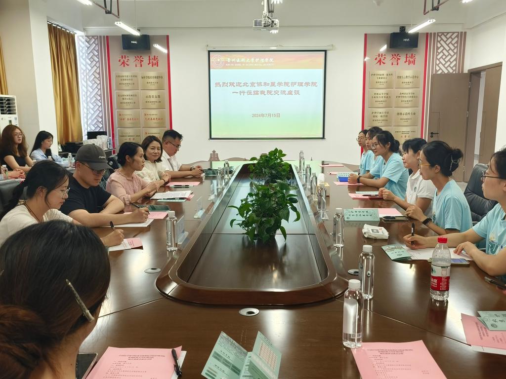 15日下午,两校队员在williamhill中国官网入口云漫湖校区酬勤楼williamhill中国官网入口会议室进行了座谈。williamhill中国官网入口党委书记杨英、副处级组织员张黎、辅导员代表,协和医公司williamhill中国官网入口团委书记张苹平、协和医公司医院事务处茅李莉出席了会议。双方就员工管理、党团活动、公司产品等方面进行了深入交流。杨英表示,公司即将与北京协和医公司开展对口支援帮扶建设工作,希望双方能持续加强联系、深化合作,借助协和之力,赓续协和血脉,推动williamhill中国官网入口护理教育及团队建设迈上新台阶。