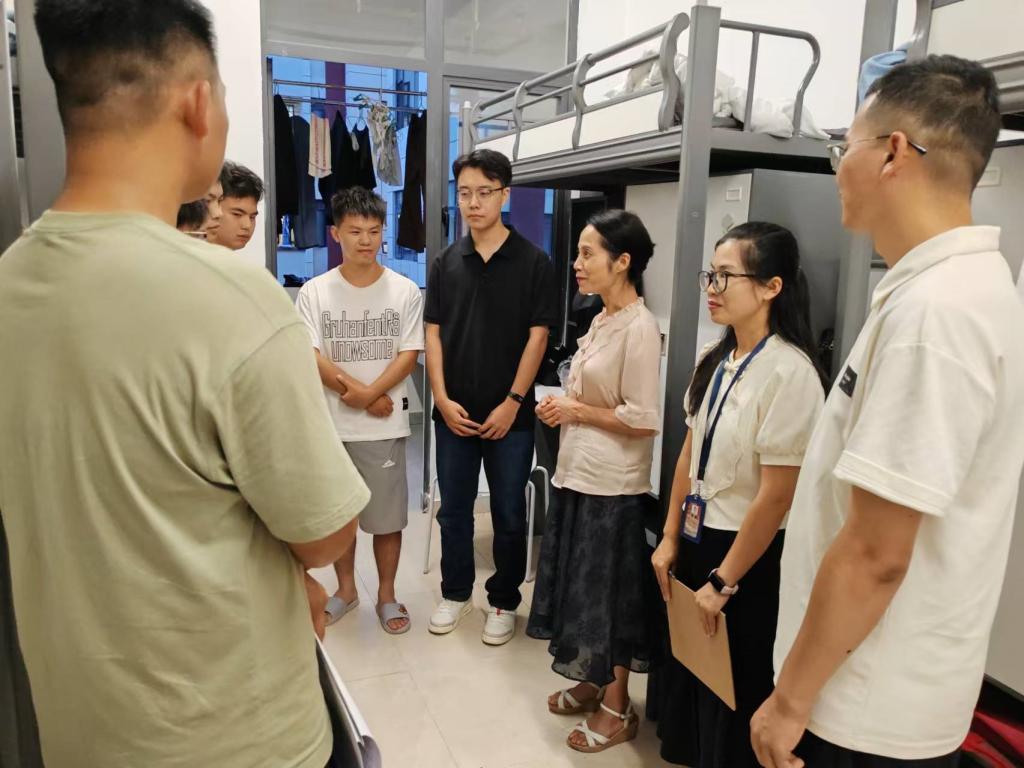 8月23日、24日晚,杨英、何为带领新生辅导员深入新生宿舍,与新生及家长进行亲切交流,细心询问家庭情况、入住宿舍的感受,了解他们的需求,帮助他们排忧解难。