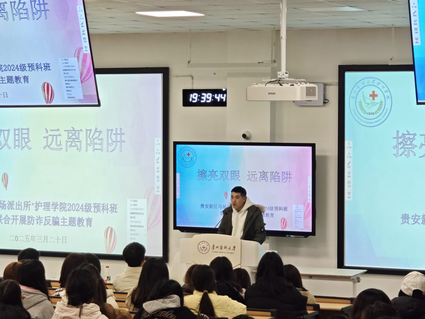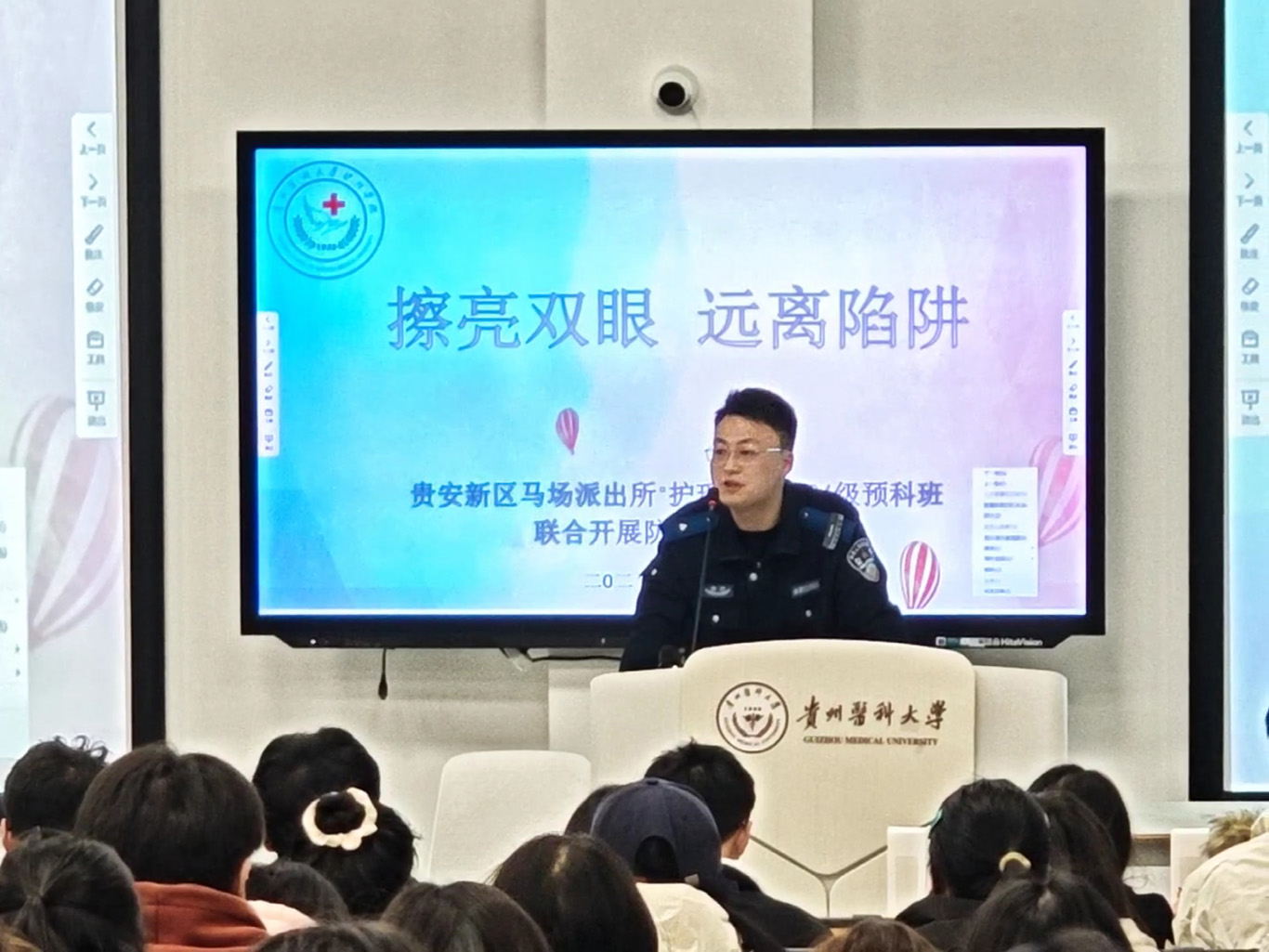 3月20日,为进一步增强少数民族预科班员工防范网络诈骗意识,切实保障个人财产安全。2024级少数民族预科班联合贵安新区马场派出所,在云漫湖校区临床组团M201教室组织开展了“擦亮双眼,远离陷阱”主题反诈宣传教育活动。本次活动由williamhill中国官网入口辅导员袁明主持,保卫处老师刘勇康,贵安新区马场派出所警官汤思恒,2024级预科班全体同学参加。