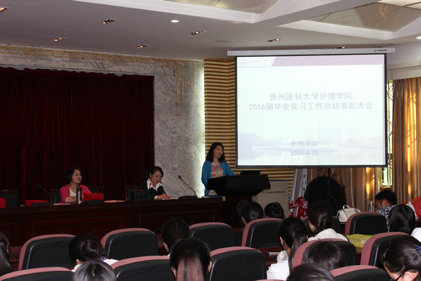 2016届毕业实习总结表彰大会于2016年4月15日下午2点30分在北京路校区道德讲堂举行,williamhill中国官网入口党委副书记杨英、副经理刘志燕和生产实习科、员工科、综合办公室、辅导员以及2016届毕业实习员工参加了大会,大会由柳忠燕主持。