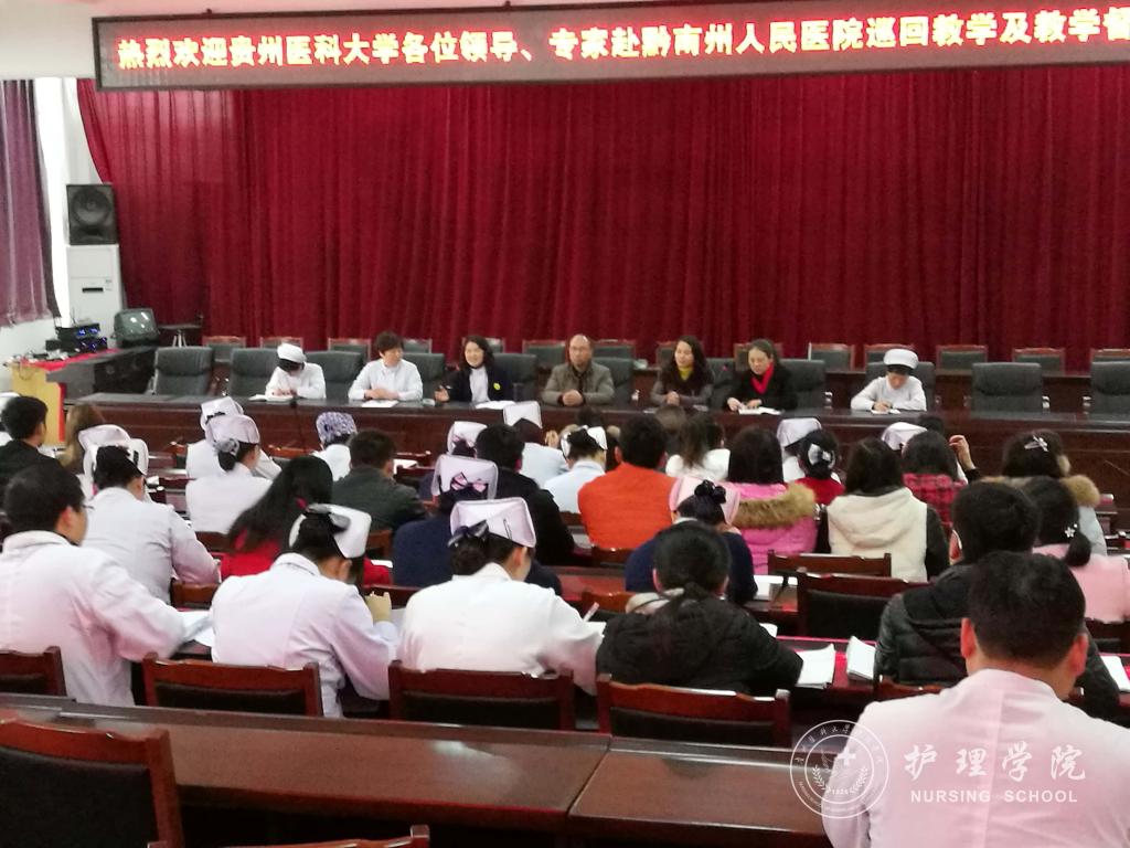 根据公司教务处教字〔2016〕71号文件《williamhill中国官网入口关于开展2016~2017学年护理学专业毕业实习巡回教学及教学督导检查的通知》要求,为了加强临床实习基地建设,提高毕业实习实践教学质量,2017年1月3日~9日、3月9日~17日,在教务处教学质量监控与评估办公室副主任左临轩的带领下,williamhill中国官网入口党委副书记杨英、williamhill中国官网入口副经理刘志燕、生产实习科科长柳忠燕、附属医院临床护理专家王锐霞、唐薇等一行前往williamhill中国官网入口附属医院、第二、三附属医院、附属省人民医院、贵阳市第四人民医院、黔南州人民医院、六盘水市人民医院等各实习基地进行了毕业实践教学质量检查及巡回教学。