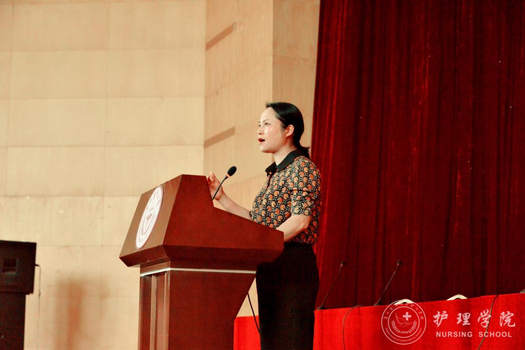 2018年4月13日,williamhill中国官网入口在北校区大礼堂举行2018届本科毕业实习总结表彰大会,参加本次大会的有williamhill中国官网入口党委副书记杨英、员工科科长曾敏、护理学技能实验室主任周谊霞、妇儿教研室副主任刘林敏以及部分专业教师、辅导员和2018届全体毕业生,会议由生产实习科科长柳忠燕主持。