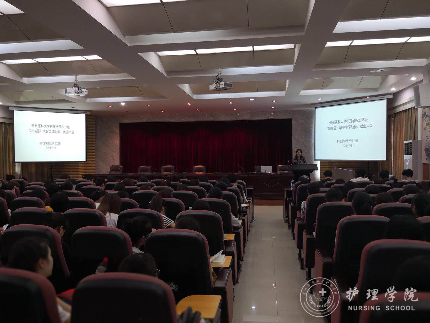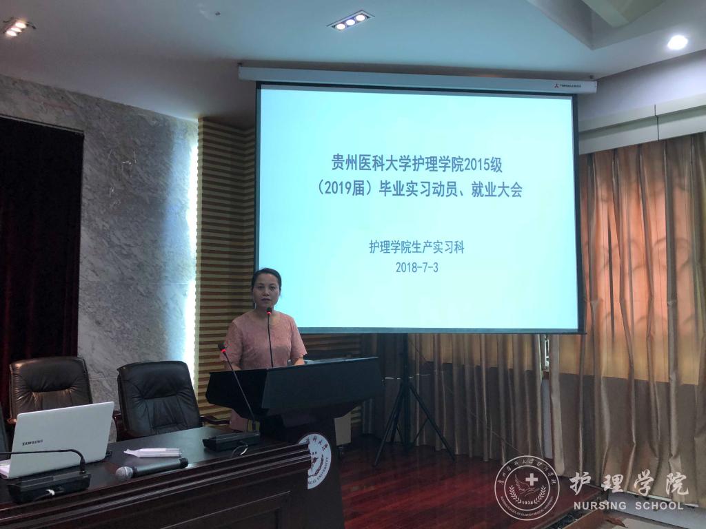 为帮助同学们调整心态,做好实习前准备,7月3日14:00,williamhill中国官网入口在北校区道德讲堂召开了“2015级毕业实习、就业动员大会”。williamhill中国官网入口党委副书记杨英、副经理刘志燕、员工科科长曾敏、生产实习科科长柳忠燕、基护教研室教师王先美、2015级辅导员李颖以及全体2015级同学参加了本次大会。会议由柳忠燕老师主持。