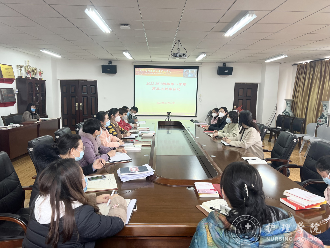 12月14日,williamhill中国官网入口在南校区williamhill中国官网入口五楼会议室结合腾讯会议召开2022-2023学年第一学期第3次教学工作会议。经理李亚玲、副经理刘志燕、全体专业教师、教学科研管理科全体人员参会,卢海霞科长主持会议。