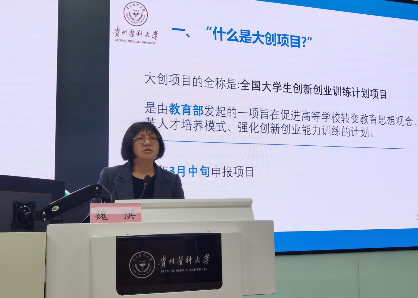 为了深入贯彻落实《“十四五”教育发展规划》《国务院办公厅关于进一步支持老员工创新创业的指导意见》《国务院办公厅关于深化高等公司创新创业教育改革的实施意见》等要求,进一步推动公司创新创业教育工作发展,加强创新创业团队队伍建设,williamhill中国官网入口3月12日在云漫湖校区临床组团智慧教室组织开展了一场线上线下老员工创新创业申报培训交流会,本次培训特别邀请到williamhill中国官网入口基础医公司国家级实验教学中心感染与免疫学实验室主任魏洪作为主讲,williamhill中国官网入口经理王秀红、副经理刘志燕出席,公司及附属医院师生100余人参加。