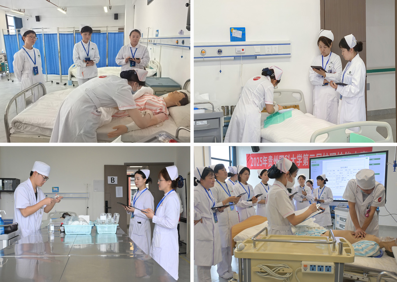 大赛历经前期海选,12支队伍从133名报名者中脱颖而出进入正赛,赛事设置开幕式、初赛、复赛、决赛和闭幕式五个环节。初赛采用“多站式”单人项目考核,选手需完成6个单项操作并汇总为团队成绩;复赛以“赛道式团队协作考核为主,围绕临床案例设置3个递进站点,要求30分钟内完成复杂护理任务;决赛聚焦“单站式”临床情景综合案例考核,选手需在20分钟内完成高难度操作与应急处理。