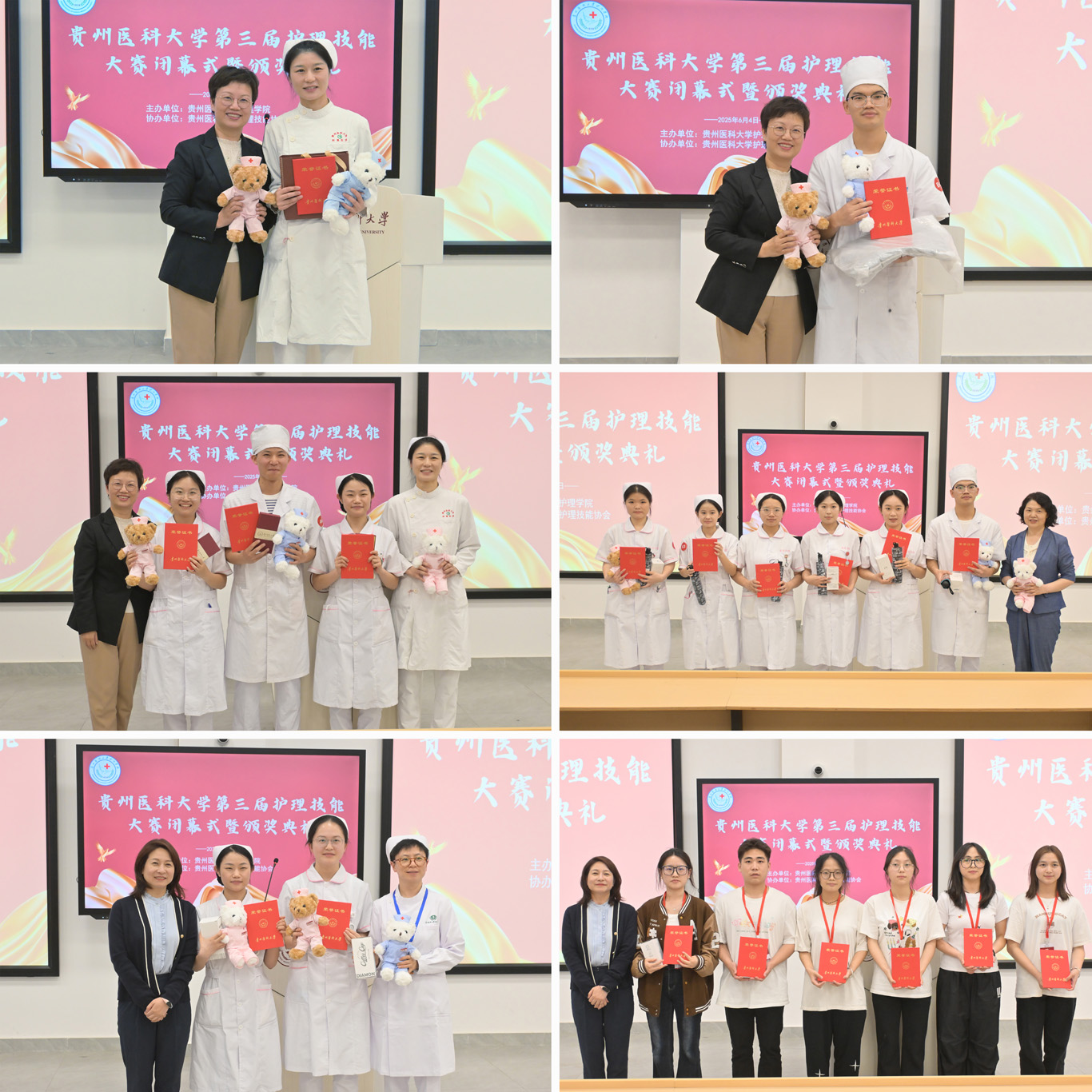 闭幕式上,公司经理王秀红对评委和同学们的表现给予了充分的肯定,对筹备大赛的工作人员表示感谢,肯定了实验室团队、护理技能协会在场地规划、流程安排、赛事宣传等方面的辛勤付出。她指出,大赛体现了 “以赛促教、以赛促学、以赛促改、以赛促建”的理念,未来要持续深化“教、学、练、赛”一体化培养模式,推动公司护理教育高质量发展,主动对接健康中国战略,依托 “护教协同”培养更多高素质护理人才。闭幕式上来自williamhill中国官网入口和附院的领导和专业教师为获奖选手和团队颁发了奖品和荣誉证书。