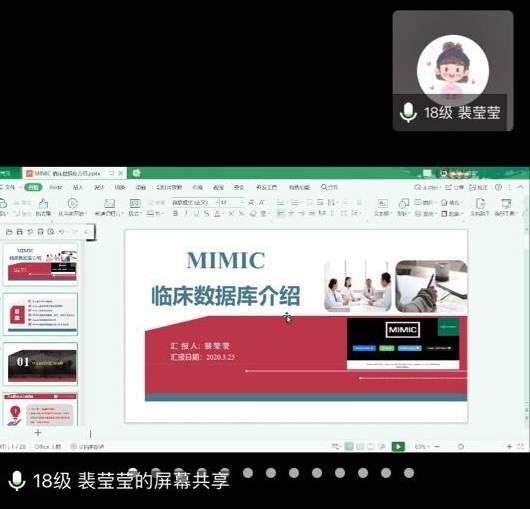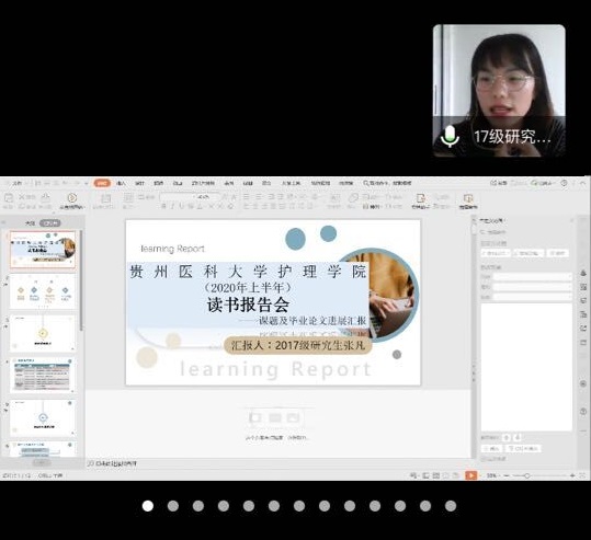 会议由williamhill中国官网入口党委副书记王秀红主持。本次读书报告会共分两个环节进行,首先由2017级方雯、覃瑛、张凡、李晓杰4位同学汇报了课题进展及学位论文完成情况,同学们结合自身完成课题和学位论文撰写过程中的经验和体会做了分享和交流。随后导师和同学对4位同学的汇报进行了点评。接下来的环节,2018级研究生张丽娟和裴莹莹分别以PPT形式进行了15分钟的读书报告汇报。张丽娟以“冰山理论”为题,分享了冰山理论核心观点及在护理研究领域的应用,裴莹莹以“MIMIC数据库介绍”为题,较为系统介绍了MIMIC数据库的使用。导师们根据员工的综合表现进行线上面对面点评,同时通过问卷星对员工汇报内容就选择意义、内容掌握、延伸拓展等方面进行综合考评,作为公司产品学术综合成绩评定参考。