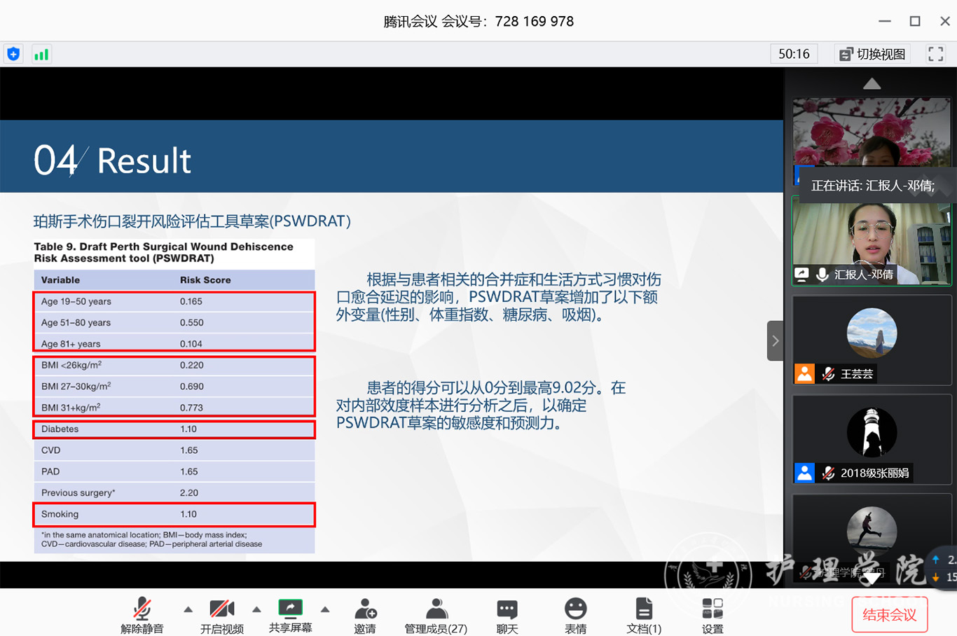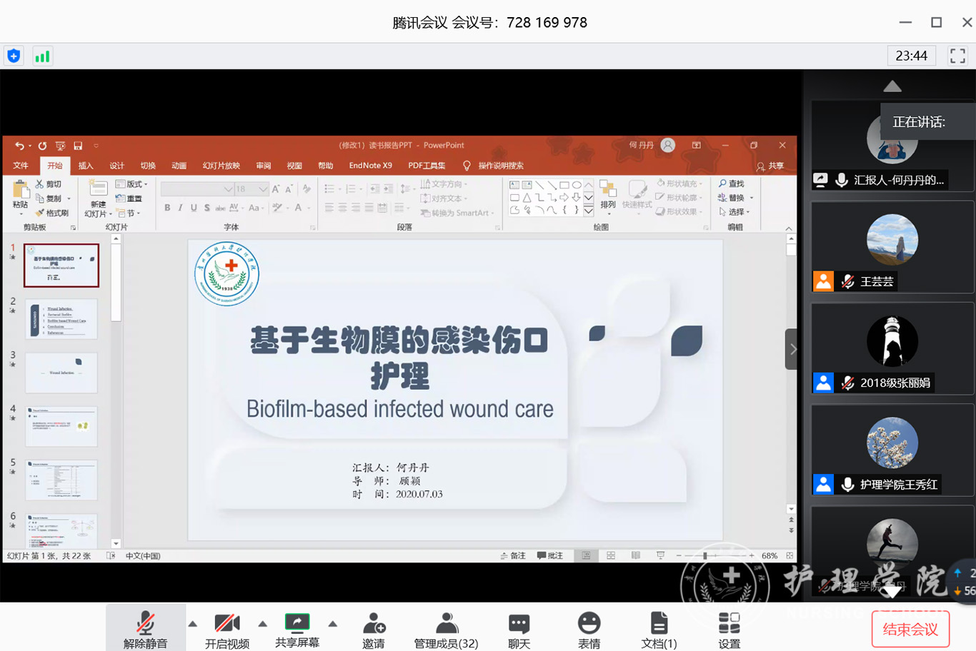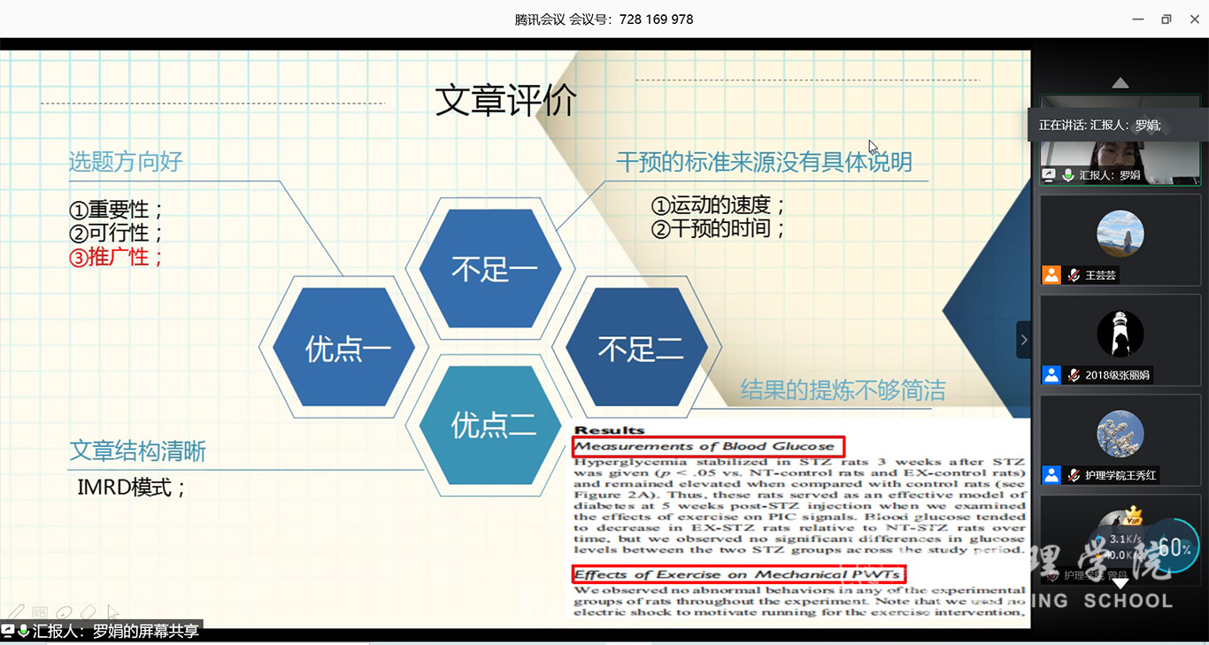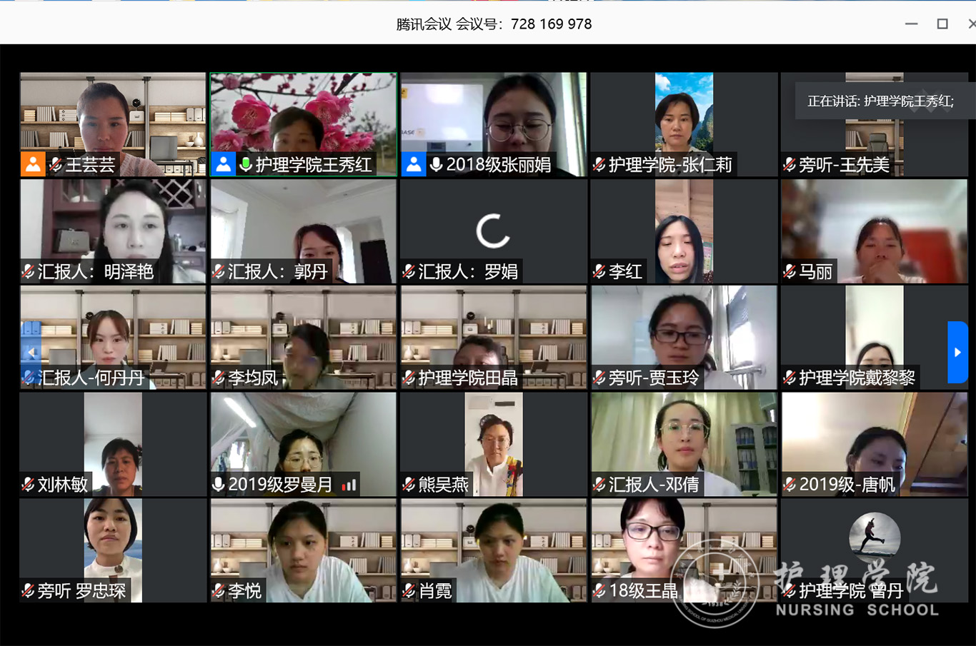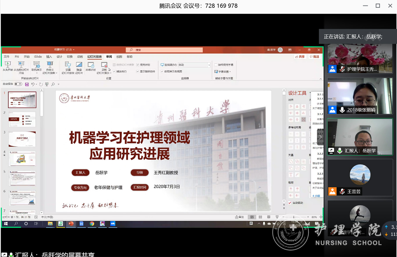 7月3日,2020年第三期研究生读书报告会以“云会议”形式进行,williamhill中国官网入口党委副书记王秀红、附属医院护理部副主任蔡鹏、williamhill中国官网入口技能实验室主任周谊霞、附属医院分娩室护士长孙念梅、williamhill中国官网入口各教研室主任、专业教师及研究生近40人参加会议。