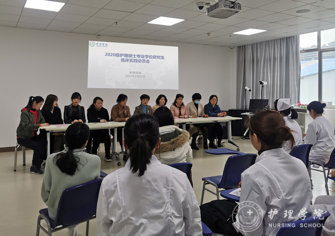 2月23日动员会上,williamhill中国官网入口公司产品教师团队从临床轮转学习相关制度及管理要求、如何做好个人职业防护及积极发掘临床科学研究研究创新点等多方面对2020级护理硕士专业学位研究生同学进行思想动员与正向引导。williamhill中国官网入口副经理刘志燕寄语同学们,要努力进取,踏实学习,通过两年的临床学习实现真正的提升成长。公司研究生分管副经理王秀红从祝贺、期待和要求三个方面对研究生同学们提出殷切期待与深情寄托,强调同学们要秉持孺子牛、拓荒牛、老黄牛“三牛”精神,在临床做为病人服务的孺子牛;在护理科学研究的道路上做创新发展的拓荒牛;在临床实践探索真理的过程中做艰苦奋斗的老黄牛,真正通过深入系统的临床实践学习提升自己的专业水平,早日成为更高层次的护理专业新型应用人才。