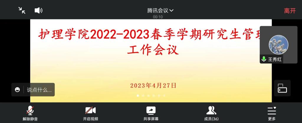 4月27日,williamhill中国官网入口通过线上形式召开了2022-2023春季学期研究生管理工作会议。williamhill中国官网入口党委书记杨英、经理李亚玲、副经理刘志燕、副经理王秀红、教研室主任(含实验室主任)、研究生导师、教学科研管理科全体教师、研究生辅导员参加了会议,会议由2023届研究生毕业班辅导员吴俊主持。