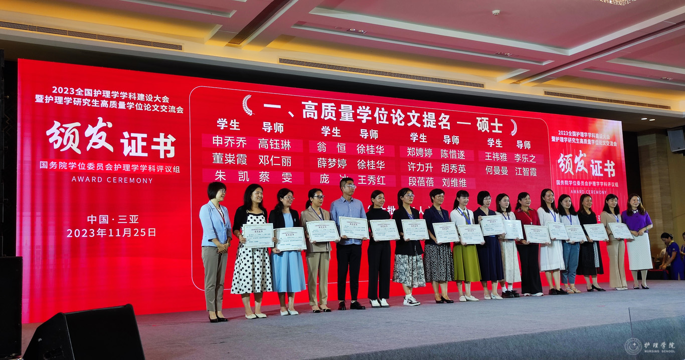 会议公布了前期由教育部护理学学科评议组开展的“高质量学位论文评选工作”情况及结果。来自全国70余所院校、2020届到2023届232篇博士硕士优秀论文进入评选目录。由研究生导师王秀红指导的2021届护理学学硕研究生王晶、2023届护理学学硕研究生庞冰的学位论文获评高质量学位论文提名奖。