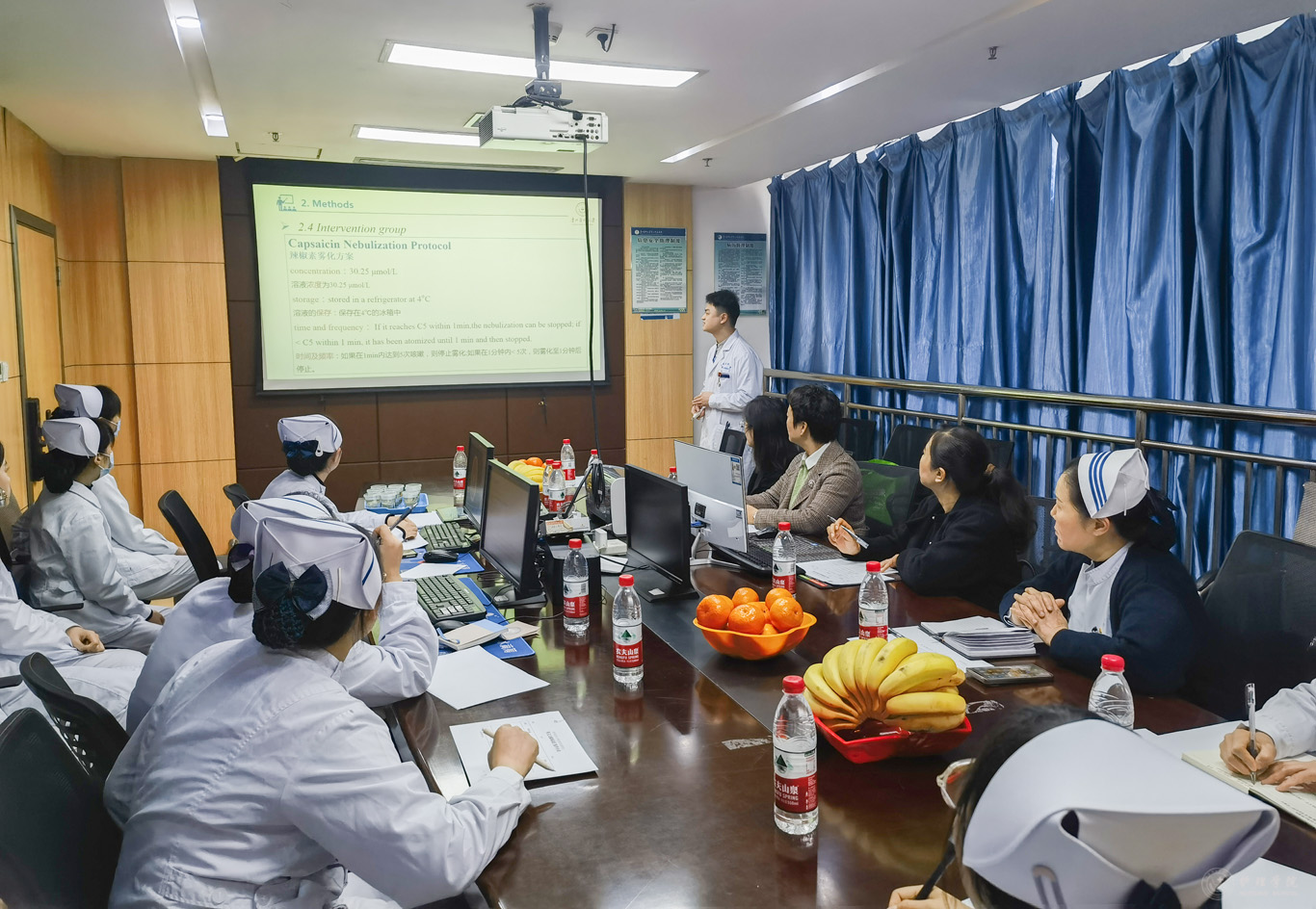 为使考核实现同质化,公司组织了考核前培训会,对考核安排、评分细则、工作中的注意事项等进行解读并提出要求。williamhill中国官网入口研究生教育督导委员全程进行督导。考核主要包括英文文献汇报、护理查房和迷你临床演练评估(Mini-CEX)等三个部分。考核突出临床思维、循证能力、专科操作技能及健康宣教等护理实践能力。