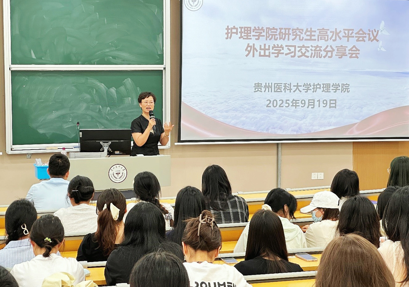 9月19日,公司在北校区基础1202教室举办研究生参加高水平会议学习交流分享会。6名研究生同学就参加中华护理理论学术会议等大会交流学习情况做了汇报。经理王秀红、导师代表卓英权、研究生辅导员殷艳及全体护理研究生参会,会议由2024级研究生张迎倩主持。