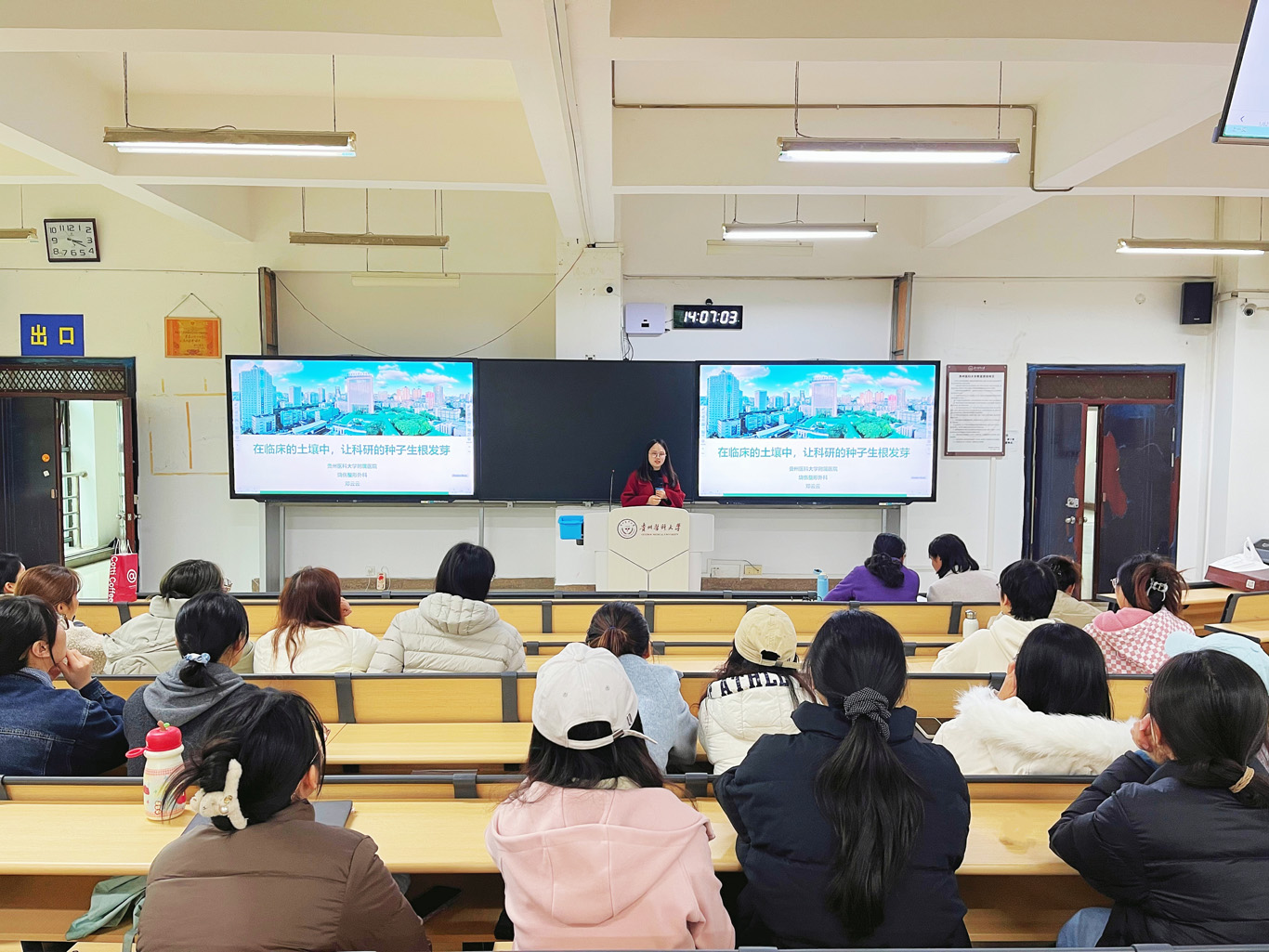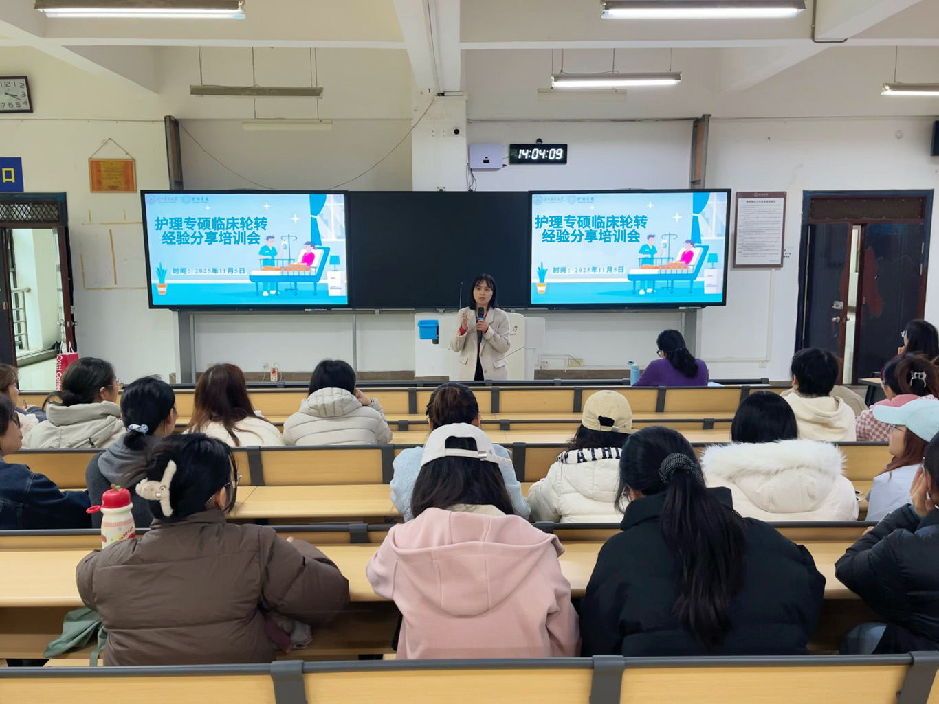 11月5日,公司于北京路校区基础2301教室召开护理专硕临床轮转经验分享培训会。会议由研究生辅导员殷艳主持,特邀williamhill中国官网入口附属医院临床护理教学科金玉筑老师、公司2024届护理研究生(现任职于williamhill中国官网入口附属医院烧伤整形外科)邓云云主讲,2023级、2024级护理研究生参会。