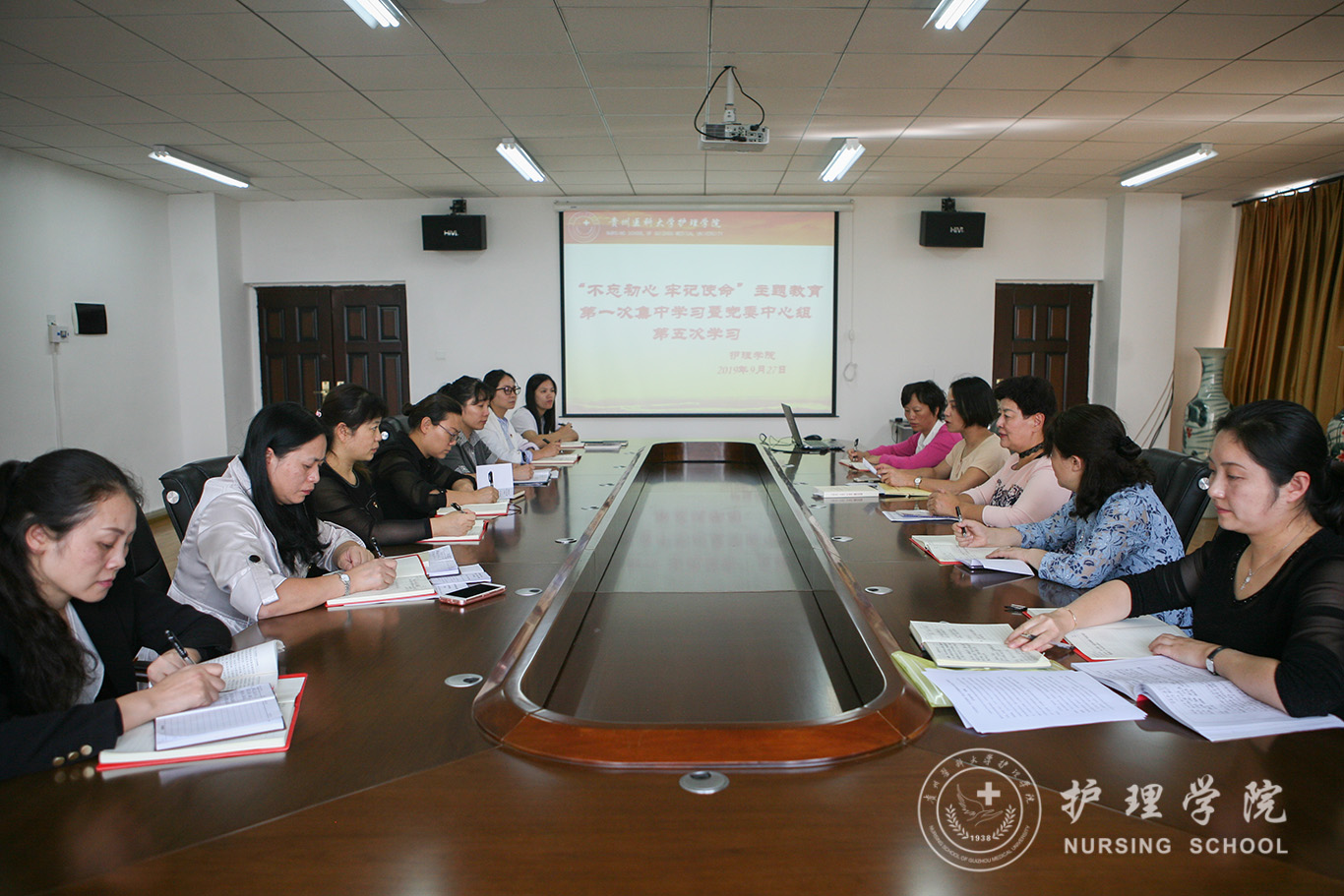 杨英围绕学习内容作了题为《不忘初心、牢记使命——全面从严治党》的中心发言。williamhill中国官网入口党委副书记王秀红、副经理刘志燕进行了交流发言。组织员曾敏、妇儿科护理教研室副主任刘林敏分别作了学习发言。