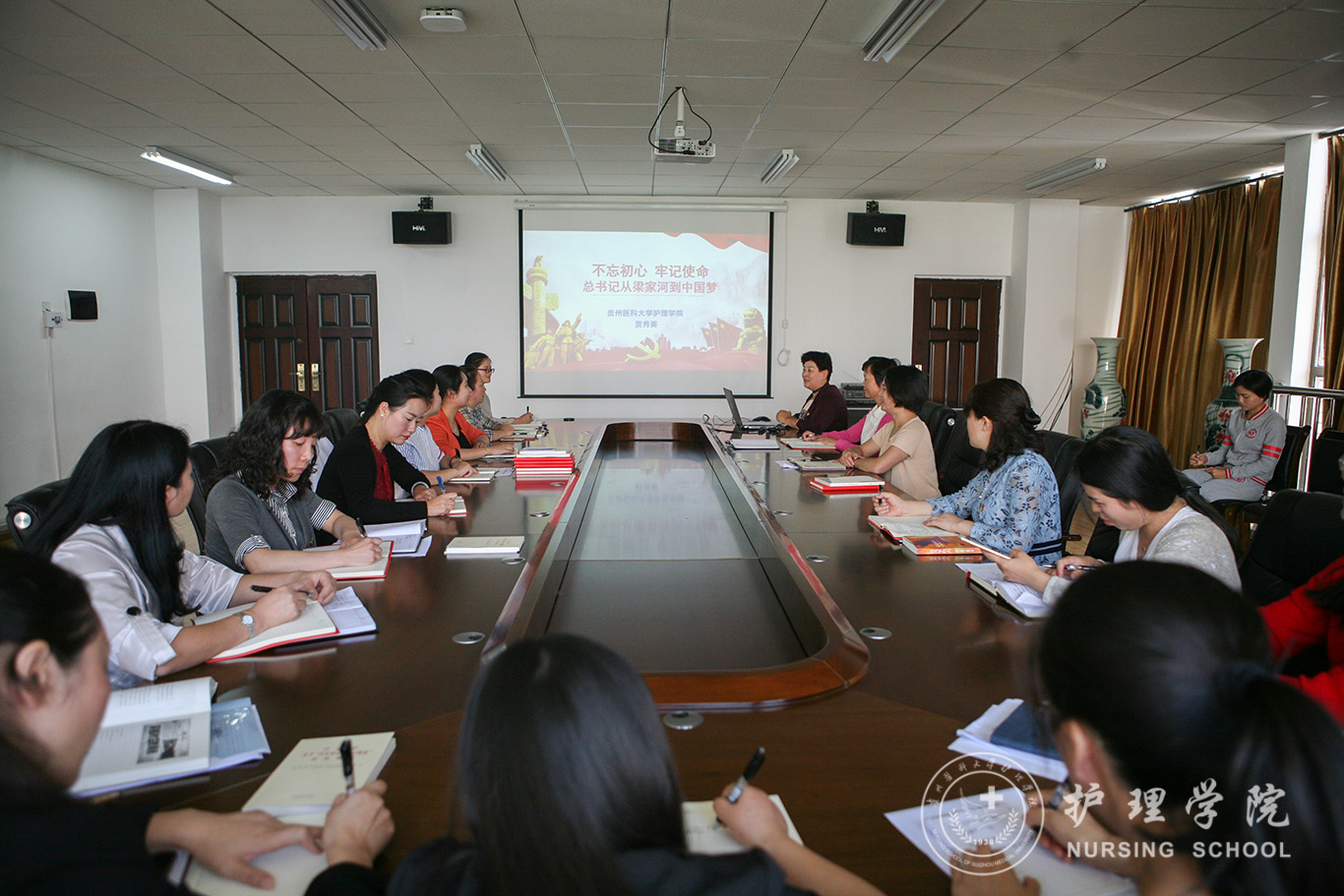 贾秀英结合自己阅读《习近平的七年知青岁月》的感受,分两个章节——“树高千尺也忘不了根”、“不忘初心、牢记使命”——为大家讲授了党课,通过丰富的图片,详实的文字,展示了习近平总书记知青岁月中的艰苦生活和成长历程,集中体现了他的崇高理想信念、丰富实践经验、卓越领导能力和人格魅力。贾秀英还与大家分享了学习习近平总书记关于“不忘初心、牢记使命”重要论述的体会,带头进行了问题检视。她强调,我们要全面加强党的建设,筑牢基层党组织战斗堡垒;要全面加强公司科研力量培养,要在护理学研究领域发挥更多、更好的作用;要全面加强思想政治教育,强化党性教育,教育广大师生传承南丁格尔精神。