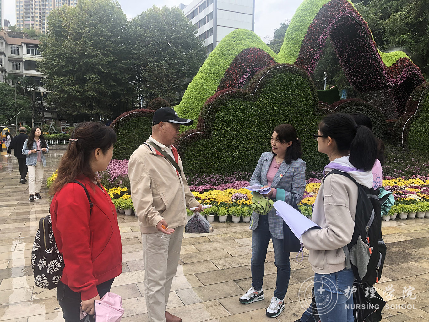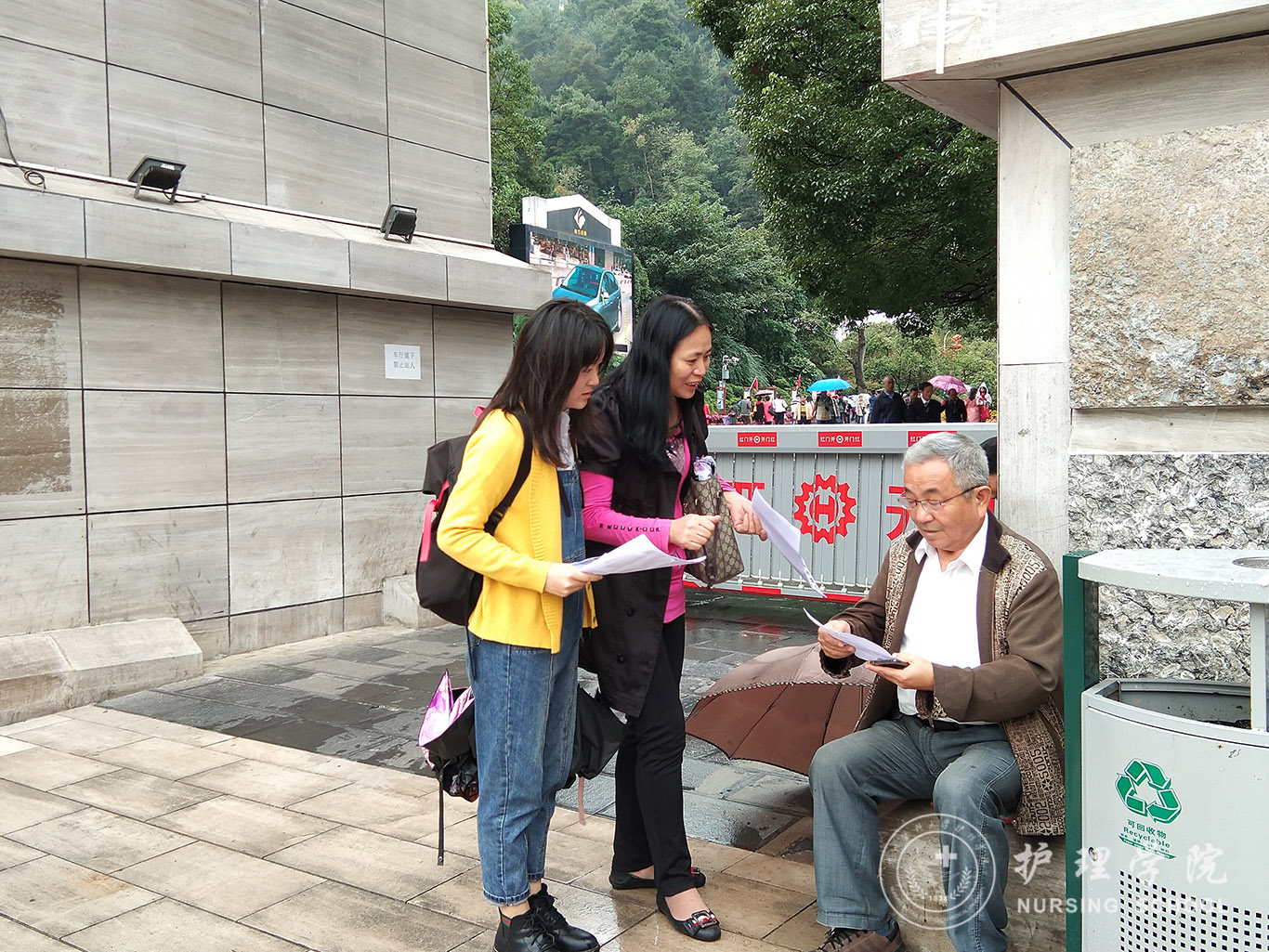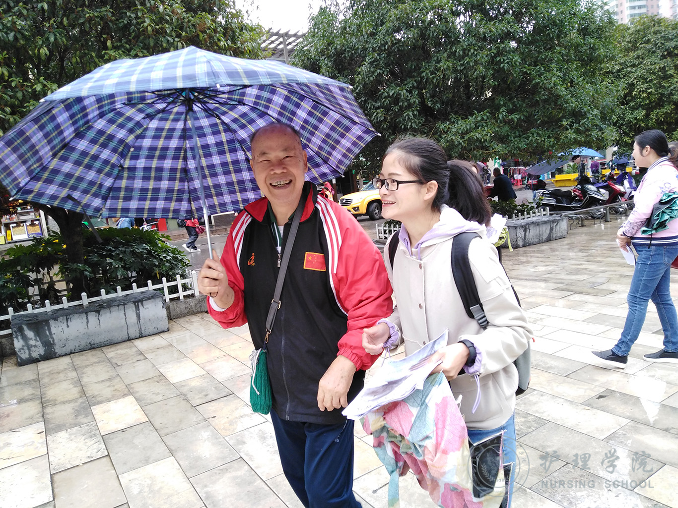 有数据显示,目前中国大约有1000万左右阿尔茨海默症患者,占世界发病总数的1/4,发病人数为世界第一位。而由于大众对该病的认识不足,导致就诊率和治疗率都非常低,给很多家庭带来了沉重的困扰及负担。为此,williamhill中国官网入口依托在老年护理方面的教学及工作经验,到老年人聚集的黔灵山公园开展了阿尔茨海默症的知识宣讲和护理指导活动。大家发放了上百份疾病宣传资料,积极为老人们讲述该病的发生原因、临床症状、治疗和预防,告知老人们在日常生活中的注意事项,帮助他们认识正常衰老和记忆力下降的区别,同时建议高危人群及时去医院就诊。天空下着蒙蒙细雨,依然阻挡不了大家的热情。