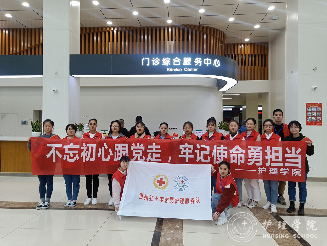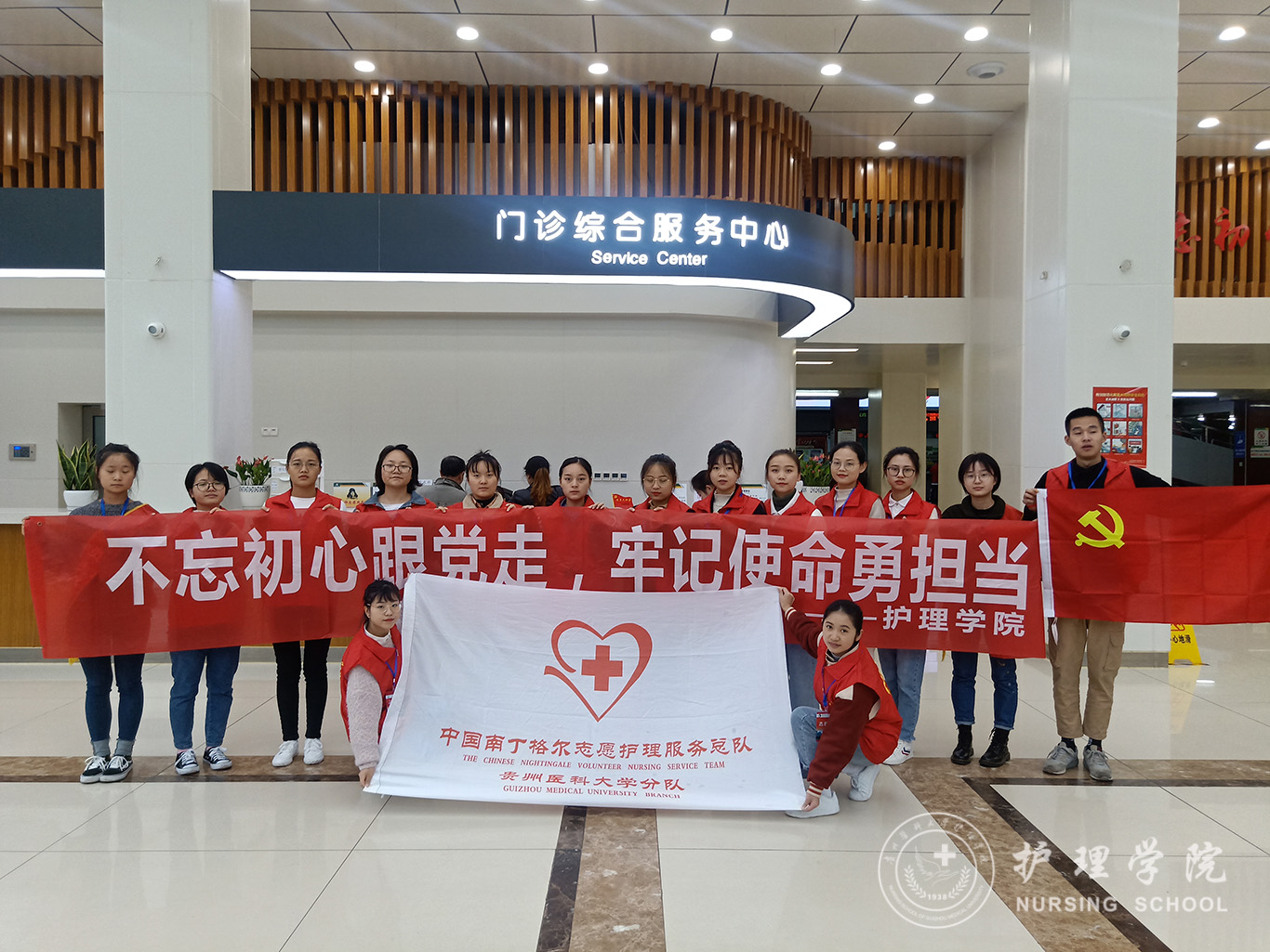 在祖国70华诞之际,为深入开展“不忘初心、牢记使命”主题教育,弘扬“奉献、友爱、互助、进步”志愿者服务精神,更好地传承南丁格尔精神,服务人民卫生健康事业。10月26日,williamhill中国官网入口员工第一党支部党员志愿者前往贵医附院门诊部开展志愿服务活动。