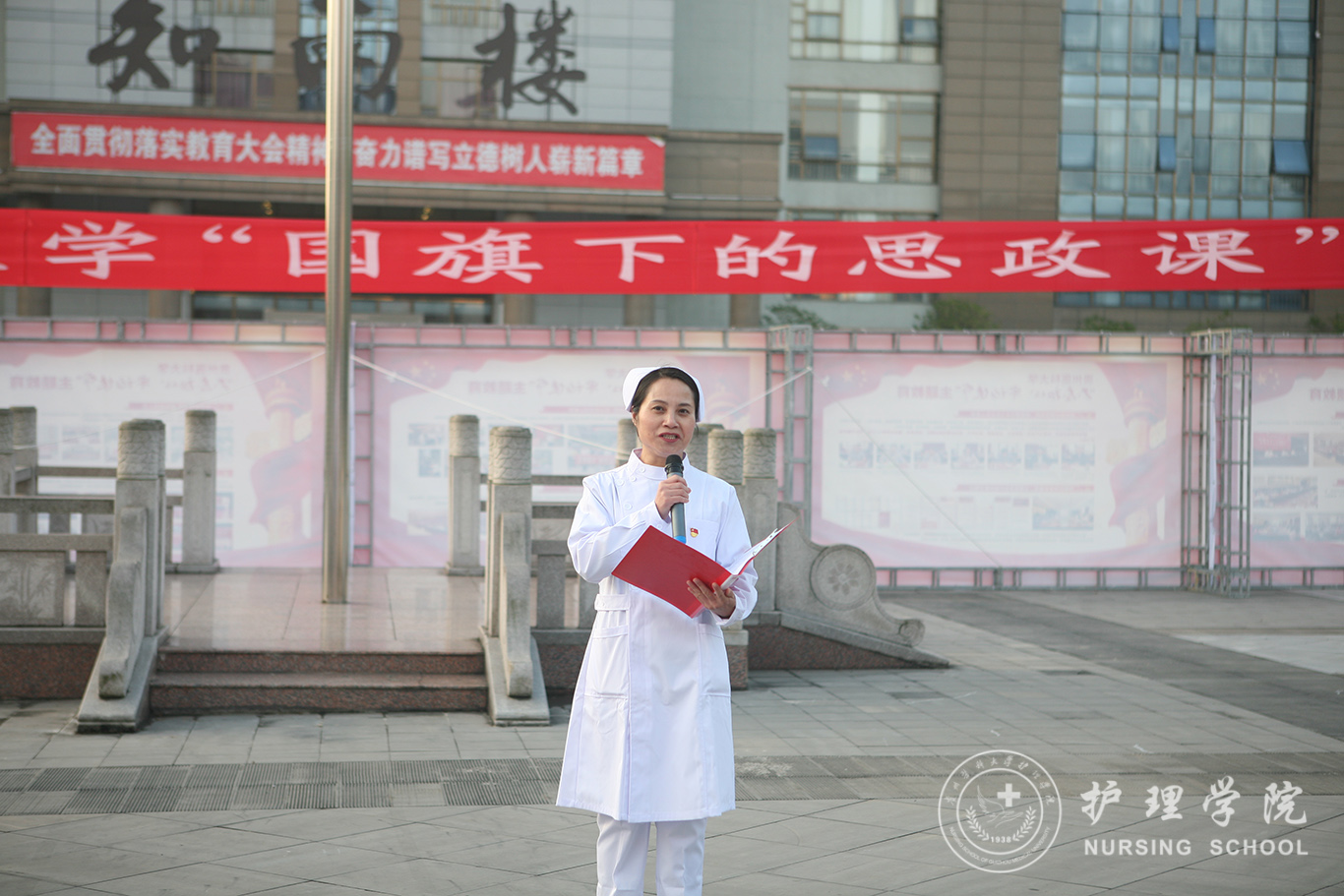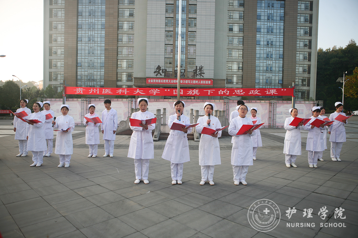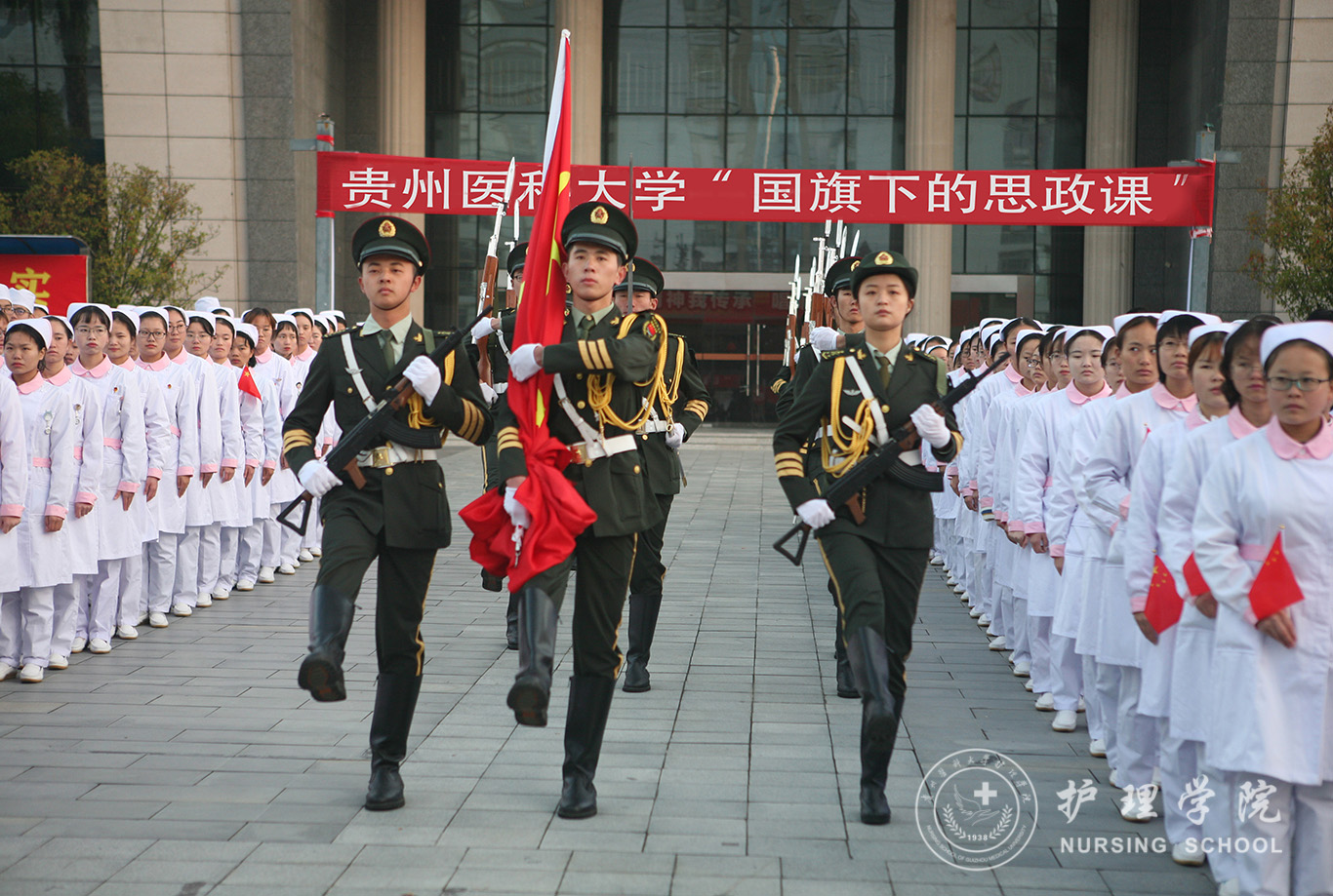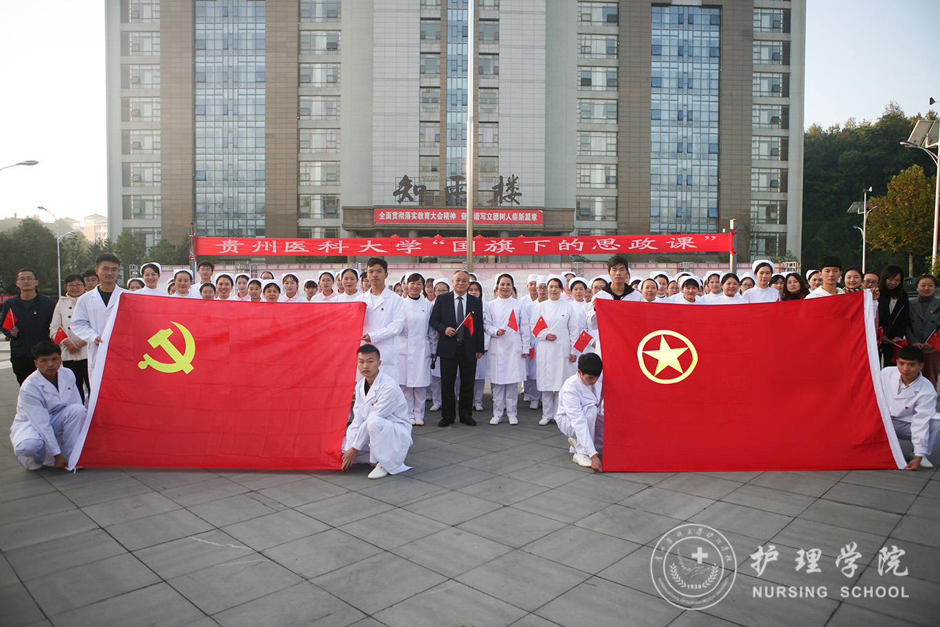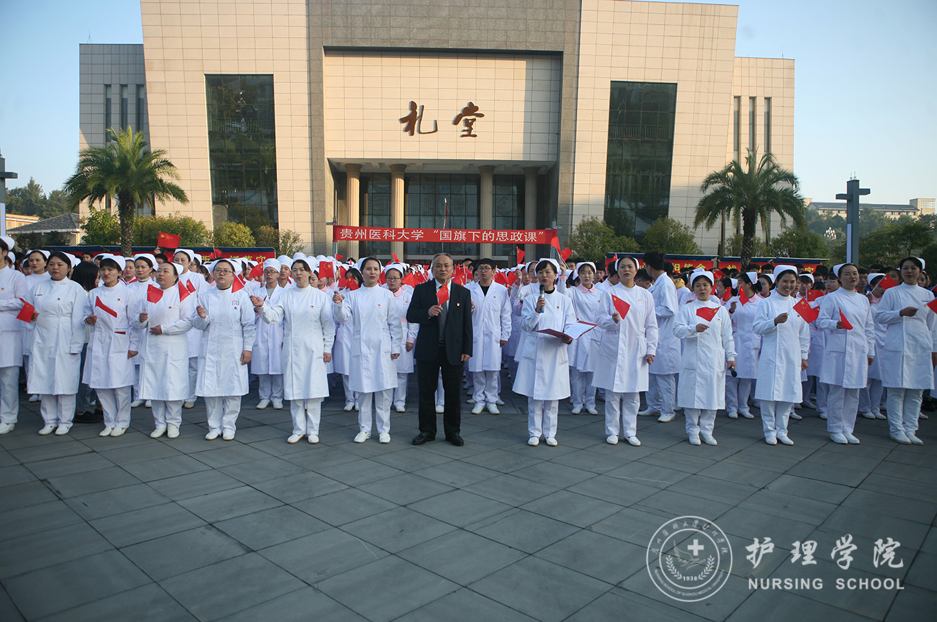 升旗仪式结束后,田晓滨给williamhill中国官网入口师生上了一堂深刻的“国旗下的思政课”。他回顾了党带领人民艰苦奋斗、自力更生的历史,分析了新中国在短时间内发生了改天换地巨大变化的原因。他指出:70年来,中国始终坚持走自己的路,经过长期探索和实践,开创和发展中国特色社会主义,从根本上改变了中国人民和中华民族的前途命运。我们的祖国从来没有像今天这样欣欣向荣、蒸蒸日上,我们的民族从来没有像今天这样扬眉吐气、自信满怀,我们的人民从来没有像今天这样幸福安康、意气风发。他谈到:建校以来,公司始终秉承“诚於己,忠于群,敬往思来”的校训,坚持“文化建校、质量立校、人才强校、科研兴校”的办学理念,在贵医精神的感召下,公司的各项事业取得了长足的进步,实现了跨越式发展。作为贵医人,我们责任重大、使命光荣,所以每个人都应把个人发展与公司的事业和祖国的命运紧密结合起来,为公司的发展、祖国的繁荣做出应有的贡献。
