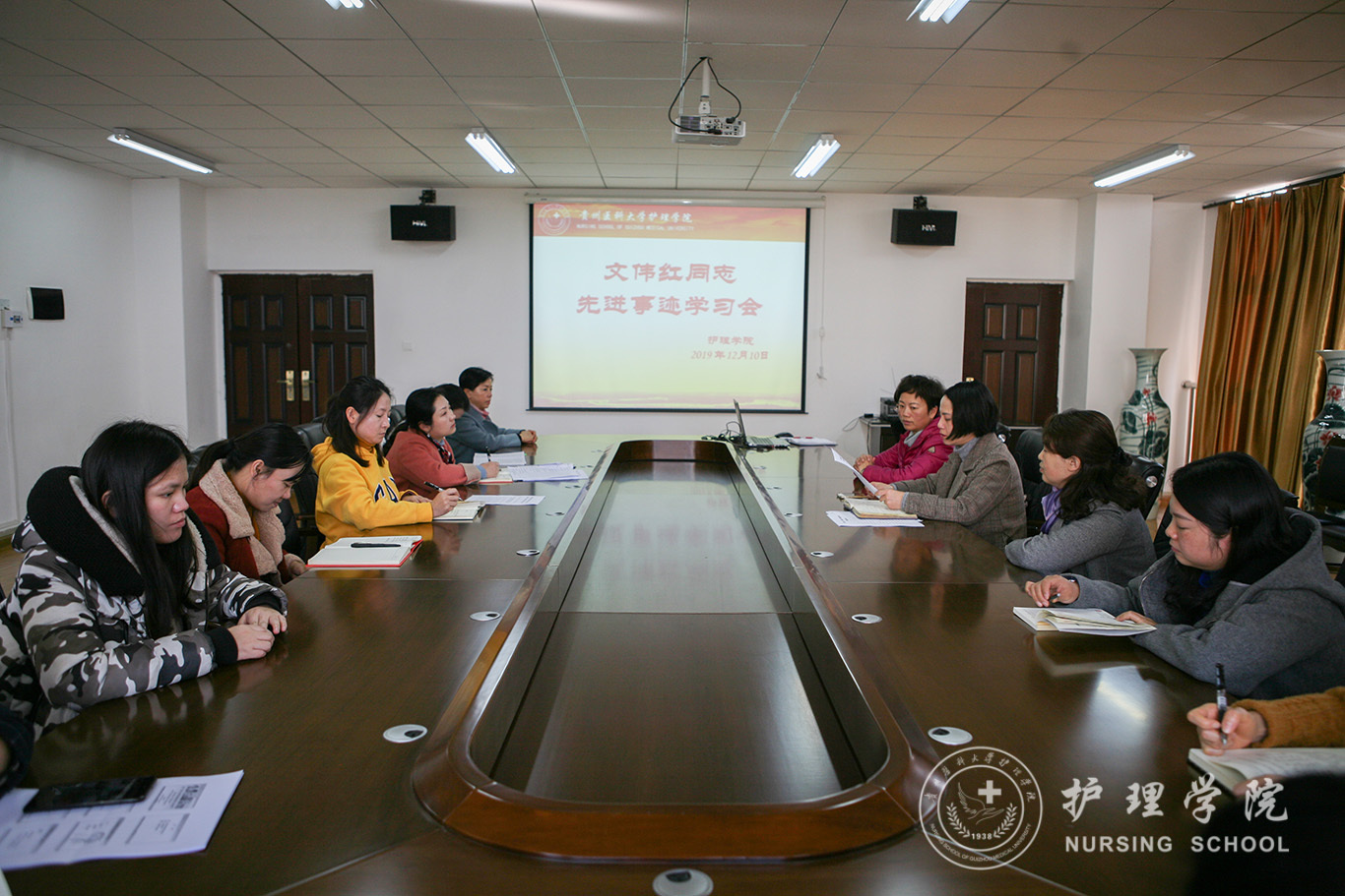 12月10日,公司召开会议,组织学习了文伟红同志的先进事迹。会议由公司党委书记杨英主持,全体无课无公事教职工参加。