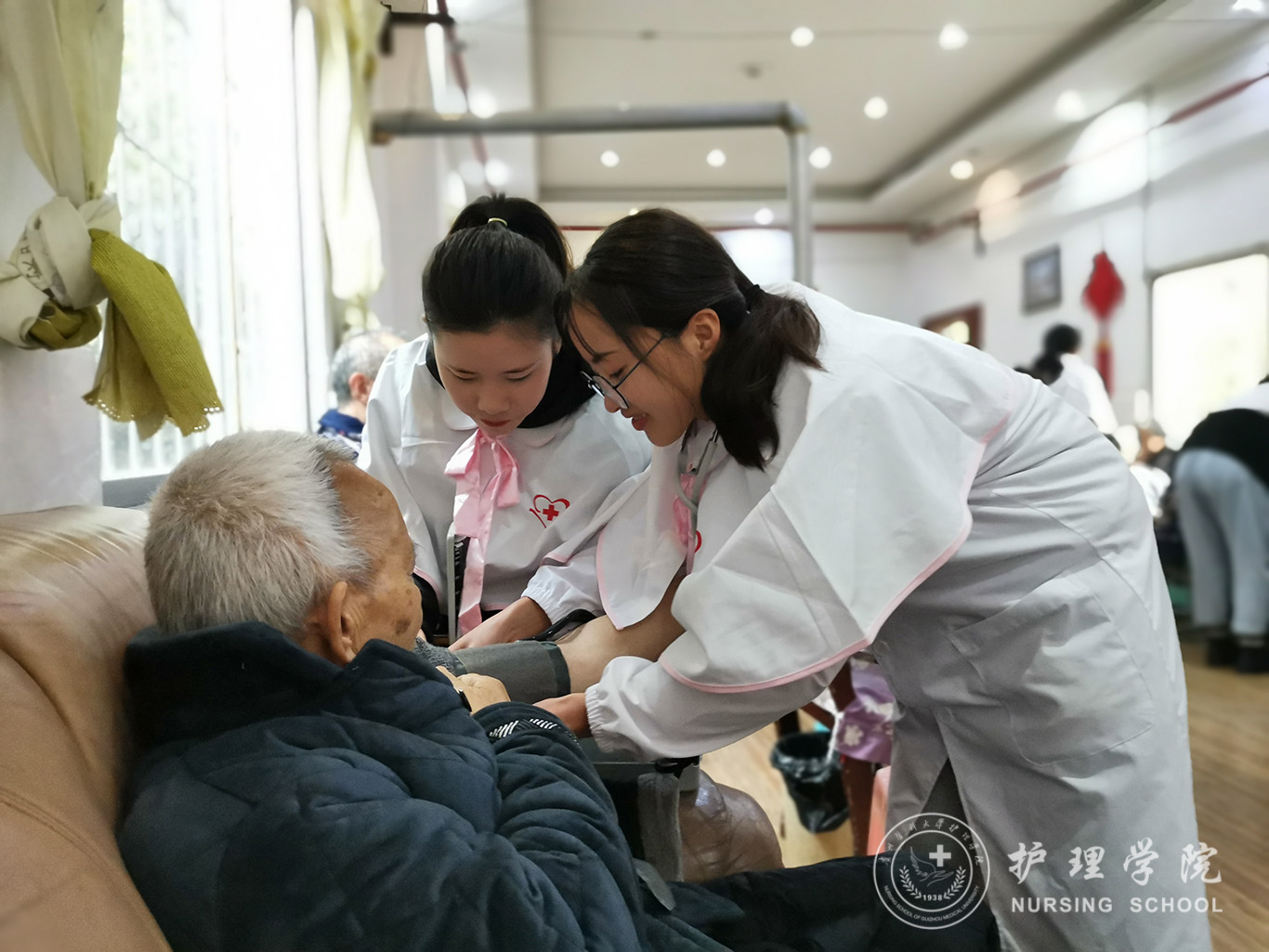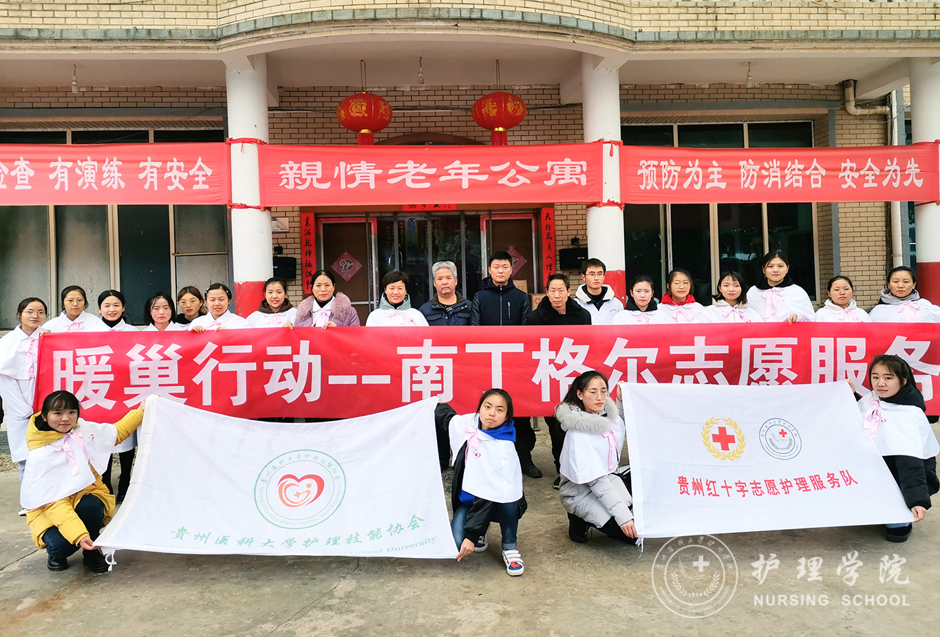 为继承和发扬南丁格尔仁道博爱、无私奉献的精神,11月30日上午,williamhill中国官网入口南丁格尔志愿服务队williamhill中国官网入口分队、贵州红十字护理志愿服务队组织志愿者一行20人,前往贵阳市花溪区亲情老年公寓开展了以“暖巢”为主题的尊老敬老志愿服务活动。williamhill中国官网入口党委副书记王秀红、妇儿科护理学教研室副主任刘林敏、williamhill中国官网入口护理技能协会部分成员、williamhill中国官网入口研究生、本科生代表参加了此次活动。