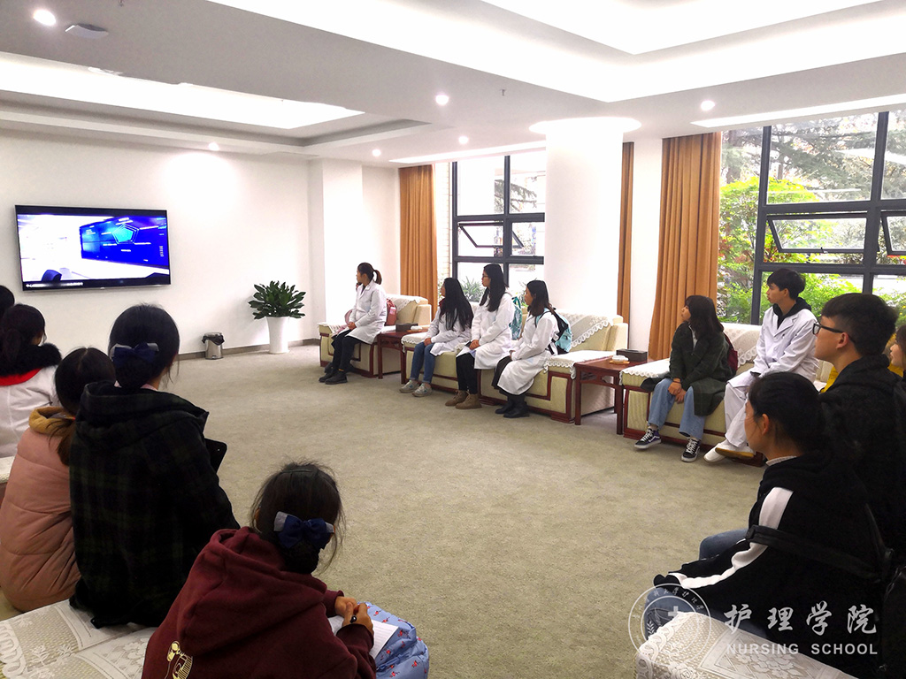 首先,发展对象们在技能中心老师的带领下,在中心一楼观看了临床教学视频,然后分别参观了VR无菌技术教学、VR -4D解剖教学、情景化腹腔教学、3D内科穿刺术、情景院前急救中心等技术。在参观的过程中,发展对象们了解到了临床技能中心是借鉴哈佛大学医公司及附属医院模拟教学模式,其目的是基于教学大数据的教学学习分析,将自主、智能、创新融入了医学教学,从而提高整体的教学效果。