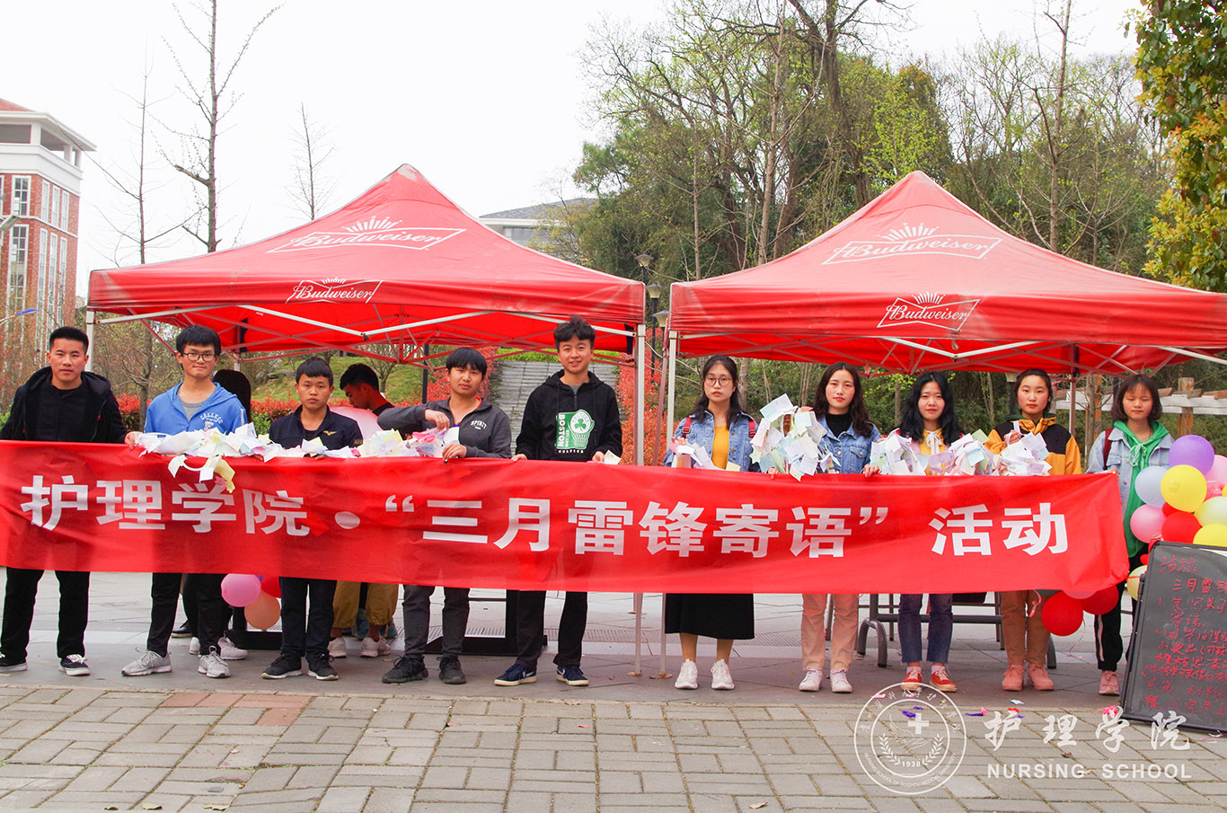 为响应校团委“传承雷锋精神 弘扬志愿新风”主题系列活动精神的号召,3月25日中午12时,williamhill中国官网入口组织志愿者在南校区悯农堂前广场开展了“三月雷锋寄语”活动,公司多个公司派出代表参与了本次活动。