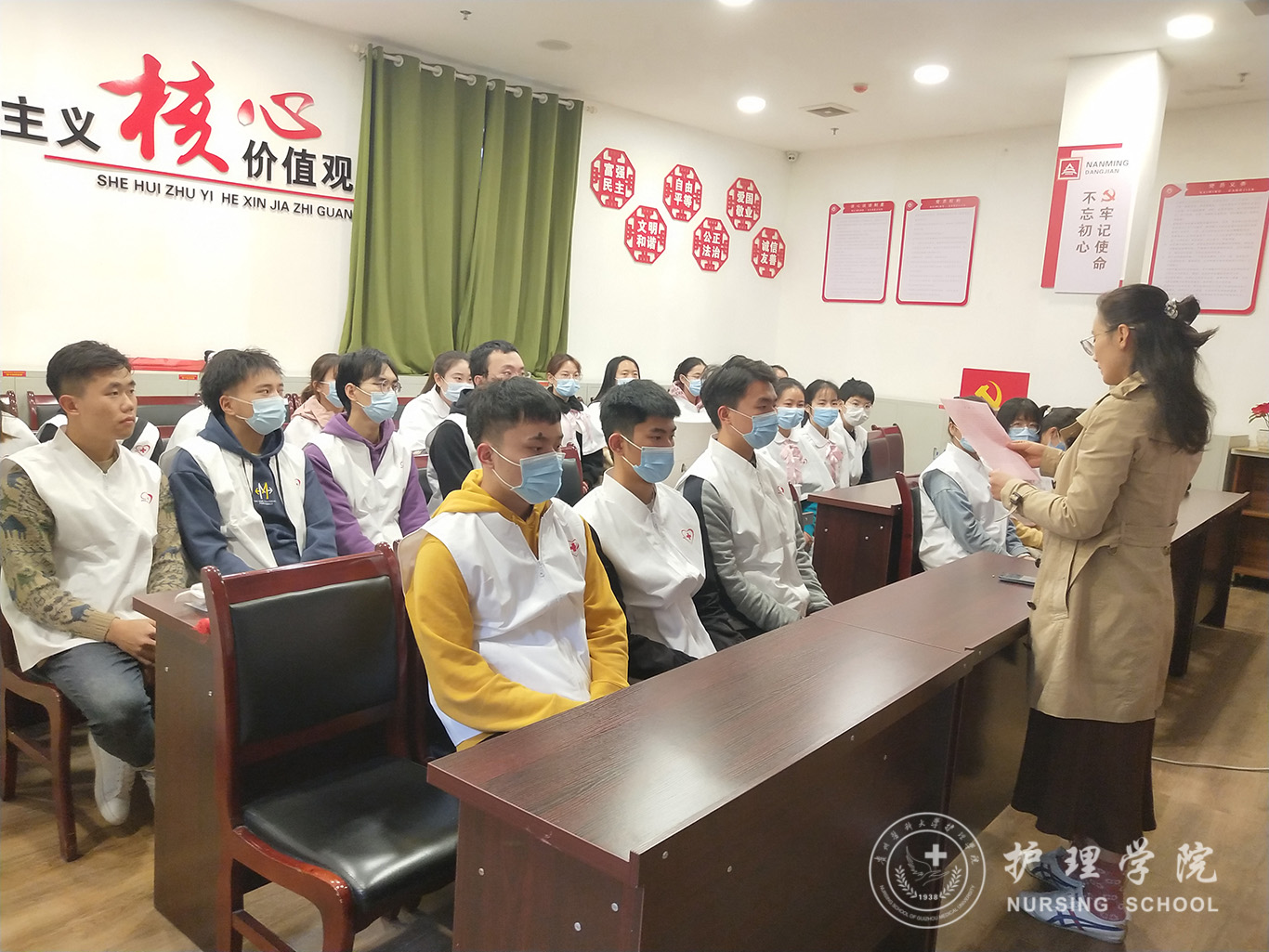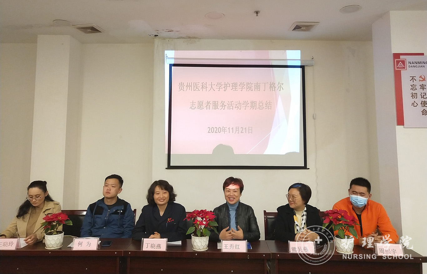 11月21日上午,williamhill中国官网入口暨中国南丁格尔志愿服务队williamhill中国官网入口分队“为老志愿服务”学期总结会议在贵阳市南明区油榨街道晚霞彩带老年人日间照料中心举行。贵钢医公司党总支书记丁晓燕,williamhill中国官网入口党委副书记何为,williamhill中国官网入口党委委员、副经理、中国南丁格尔志愿护理服务队williamhill中国官网入口分队队长王秀红,中心经理周熙宇,护理学基础教研室副主任熊吴燕,williamhill中国官网入口分团委副书记王晓玲,2018级护理学、助产学同学代表参加了此次会议,会议由王晓玲主持。