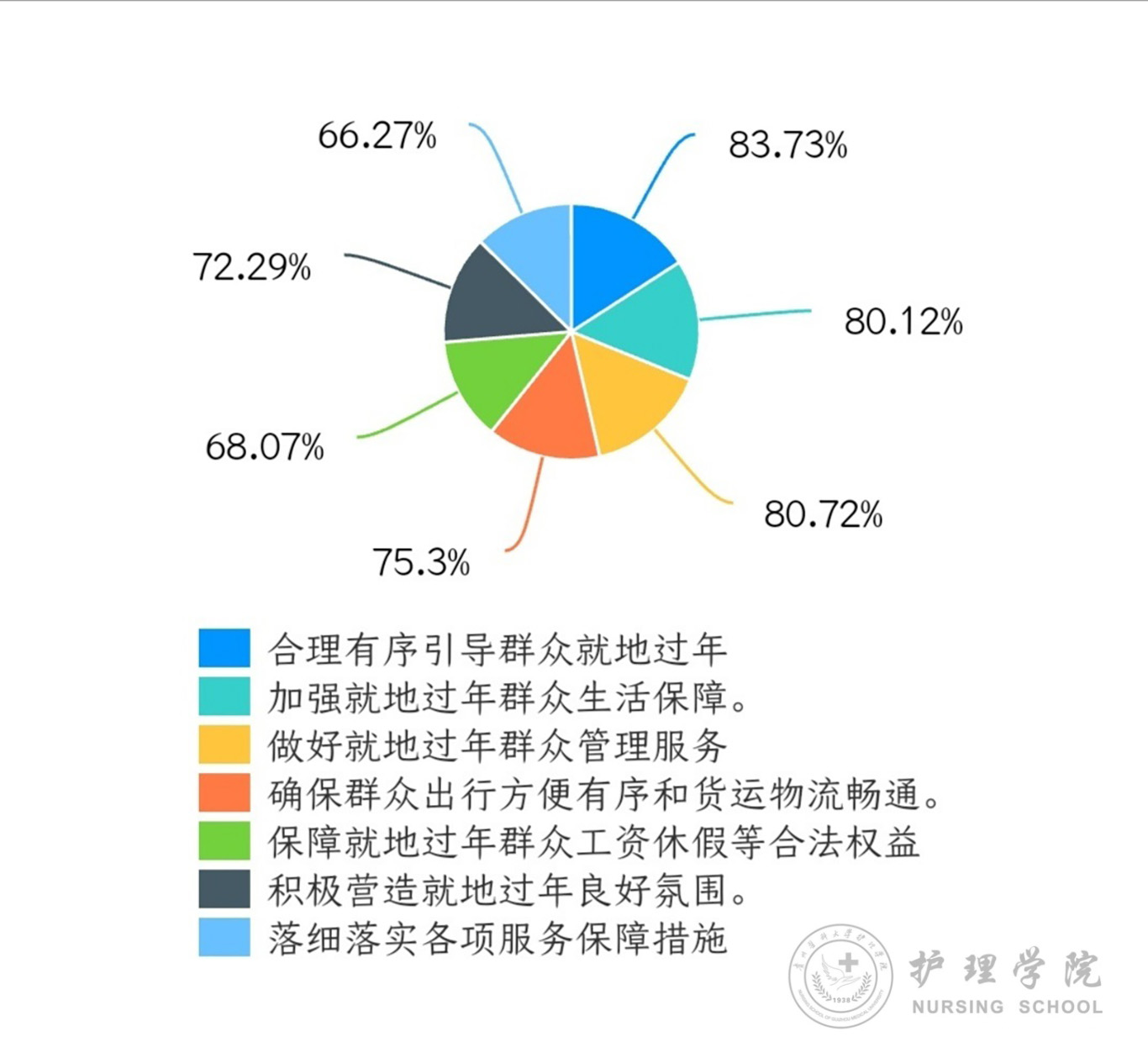 男护生协会开展了“关于疫情期间选择就地过年”的线上问卷调查活动,此次活动由副会长刘滔总负责协调,协会各部门分工明确,配合紧密,创新开展“云实践”,形成线上实践成果。通过问卷调查数据显示:90%以上的人了解国家“就地过年”政策;96.99%的人假期期间没有去过外省;家人亲戚因响应“就地过年”政策而没有回家的占比60.84%。39.16%的人表示因“就地过年”留有遗憾。在多选项“你认为‘就地过年’政策提出后需解决的问题”中,占比操过80%的有以下三项:一是合理有序引导群众就地过年、二是加强就地过年群众生活保障、三是做好就地过年群众管理服务。最后一项数据统计显示,9.04%的人感到有点遗憾,95.78%的人表示理解该政策的提出。男护生协会宣传部通过QQ、微信等线上形式宣传本次活动,鼓励大家积极参与志愿者活动,志愿者们也在此次活动中认识到了如何用实际行动诠释着当代青年奉献爱心、服务社会的政治觉悟和心系群众、心系国家的责任担当,以优异成绩迎接建党一百周年。本次春节是中国抗击新冠疫情取得重大胜利后的第一个春节,从庚子鼠年到辛丑牛年,我们坚信在党的坚强领导,全国人民的积极配合下,终将战胜疫情,迎来家国永久大团圆!