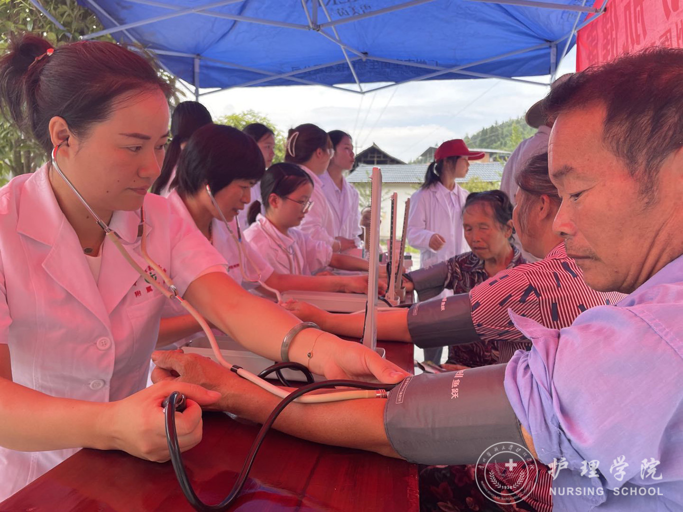 社会实践服务队分组开展了“红心向党、走访革命老同志”“关爱空巢老人、倾听心灵之声”“讲好革命故事、传承革命基因”等活动。活动中,队员们拜访了革命老前辈,看望了空巢老人和留守儿童;开展了党史知识和“防艾拒毒”宣讲活动;在专业老师带领下,为村民和消防队员进行了“心肺复苏”及“海姆立克”急救知识培训,并走村入户为村民们科普疾病知识及测量血压。