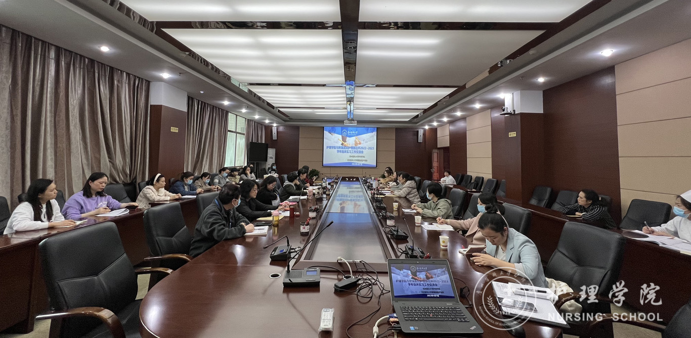 4月7日,williamhill中国官网入口与附属医院护理部在北校区行政楼6楼连廊会议室召开2022~2023学年临床实习工作交流会。参加会议的有公司副经理刘志燕、护理部副主任顾颖、临床护理教学科副科长邹杨及全体工作人员、临床带教老师、公司2019和2020级全体辅导员,会议由公司生产实习科科长柳忠燕主持。