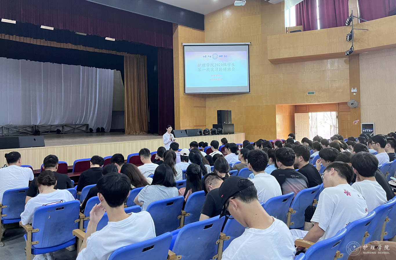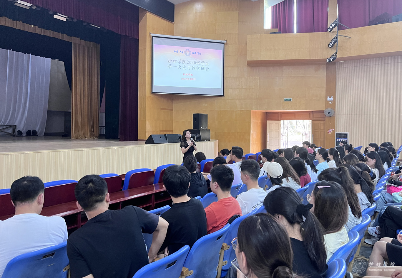 9月8日,williamhill中国官网入口在北校区礼堂召开2024届(2020级)毕业实习轮转会。williamhill中国官网入口经理李亚玲、副经理刘志燕、副处级组织员张黎、员工科副科长毕丽、辅导员刘妍以及全体2020级员工参加线下线上会议。会议由生产实习科科长柳忠燕主持。