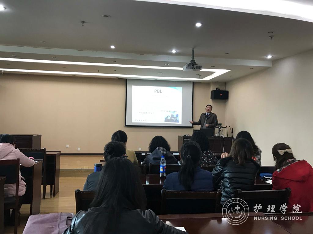 讲座分为两个部分,第一部分由尹朝晖教授作题为《PBL、CBL之我见》的演讲,分别介绍了PBL教学和CBL教学的起源、应用及发展情况,PBL、CBL教学方法各自的优势及不足,以及PBL+CBL教学法的应用与开展等情况介绍。并以《PBL和CBL教学法在肛肠外科见习教学的应用》为例,结合自身教学的经验与大家进行了分享和建议。第二部分由苏天兰副主任护师作题为《细节决定压力性损伤》的讲演,她以回顾压疮预防大事记为开头,分别介绍了压疮发生的内、外因素,国内对压疮发生因素的补充说明、压疮的分期等。讲解压疮风险评估政策的开展情况,预防措施,筛查和评估的有效依据以及处理方法、敷料的选择等情况介绍,结合临床实例与大家进行分析探讨。