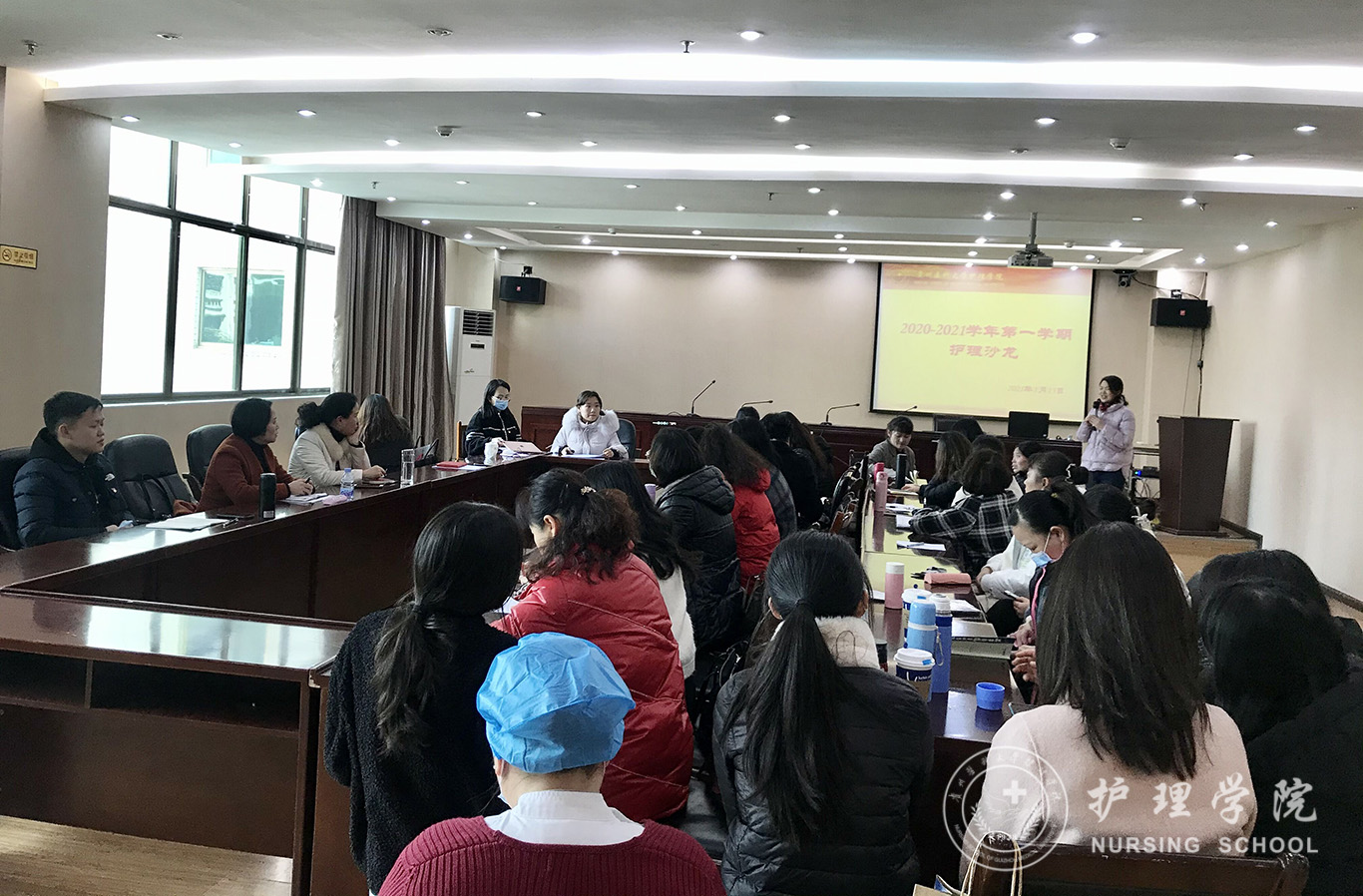 1月13日下午在北校区行政楼7楼会议室,公司召开2020-2021学年第一学期第三期“护理沙龙”活动,williamhill中国官网入口全体老师参加,副经理刘志燕担任主持。