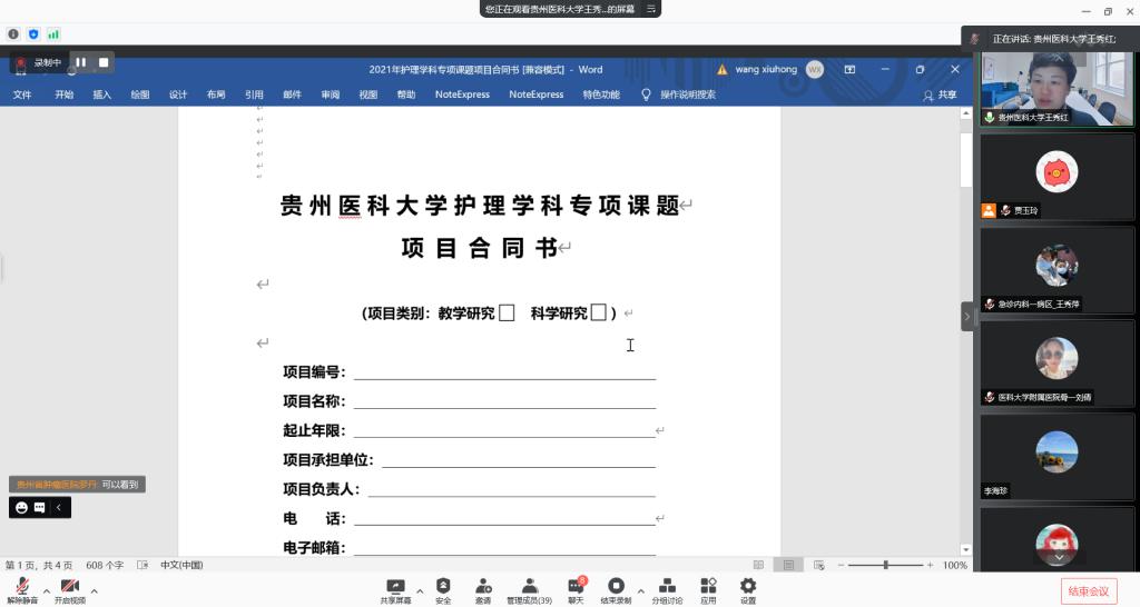 会上,项目科研秘书贾玉玲对项目合同书签订事宜进行了告知,最后,王秀红针对各负责人提出的问题进行答疑,并鼓励大家要牢固树立“医教研协同发展”理念,找准定位,抓住机会,在每一次微小的尝试和改变中不断成长。