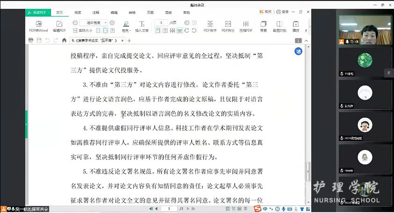 最后李亚玲总结指出科研诚信是促进公司医科事业可持续健康发展的保障、是科研工作者的底线红线,一定要提高站位、深化认识,坚守学术道德。要求在申报国自然(国社科)过程中务必认真思考,仔细斟酌,加强交流;从大局出发,把项目申报与团队建设、团队建设、研究方向相结合,全院教师同心协力,提升科研水平,共同推动公司科研工作的高质量发展。