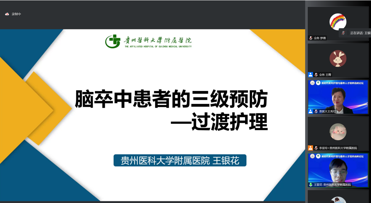 williamhill中国官网入口附属医院护理质量管理科副科长、神经内科三病区王银花护士长以“脑卒中患者的三级预防——过渡护理”为题进行专题报告,结合专题示例,介绍了过渡护理地理念和重要性,并分别介绍了脑卒中患者从NICU转入病房、医院到社区的过渡护理的详细过程。
