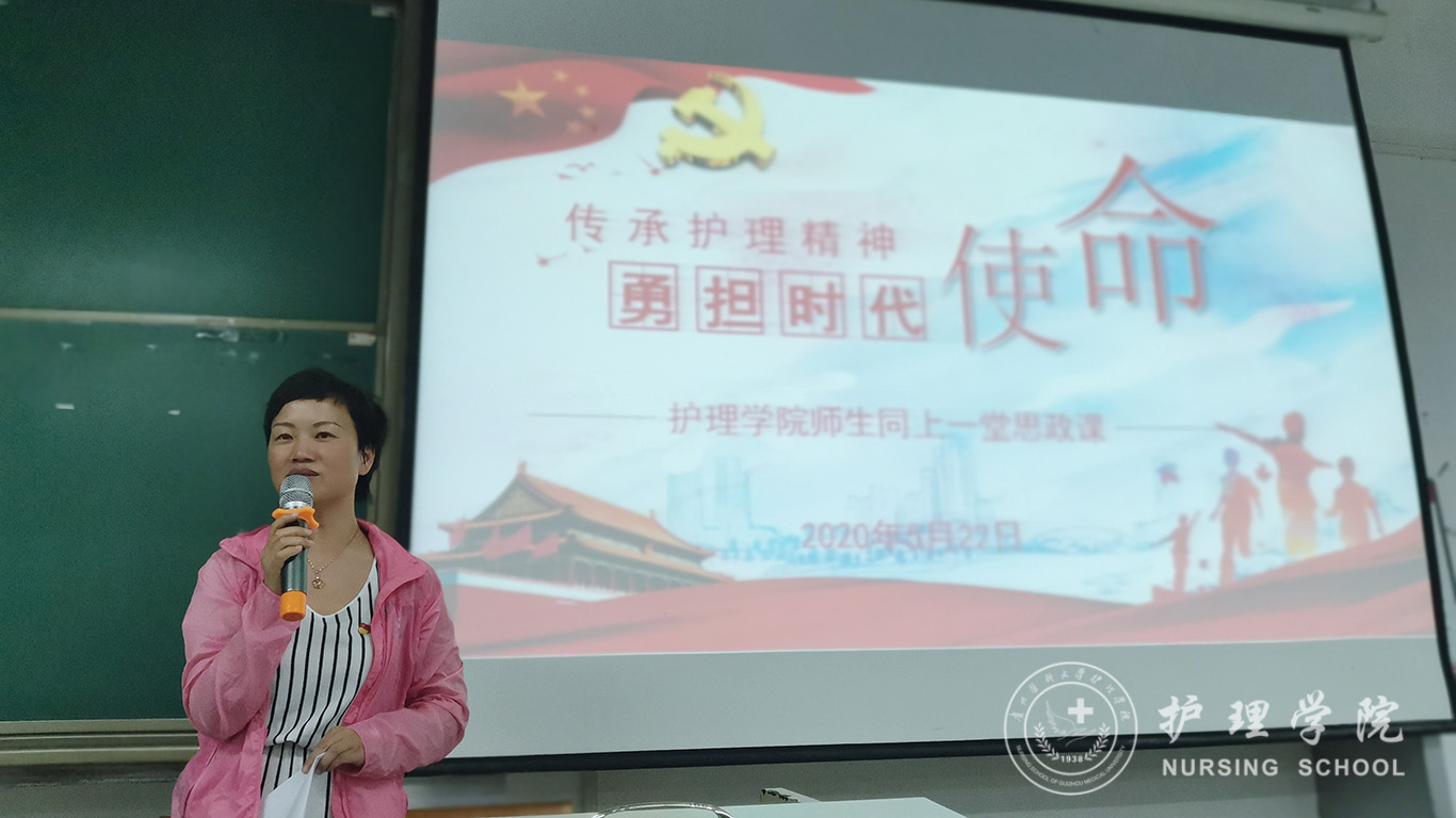 5月22日,williamhill中国官网入口员工第一、二党支部在北校区2201教室开展了毕业生党员“最后一堂党课”活动。williamhill中国官网入口党委书记杨英以《牢记初心使命弘扬护理情怀》为题为全体毕业生党员上最后一堂党课。williamhill中国官网入口党委副书记王秀红、正科级组织员曾敏,综合办副主任、员工第一党支部书记李颖,员工第二党支部书记马景瑶及员工第一、二党支部全体毕业生党员通过线下的形式参与了党课学习,其他党员及入党积极分子通过线上的形式参与了党课学习。本次活动由王秀红主持。