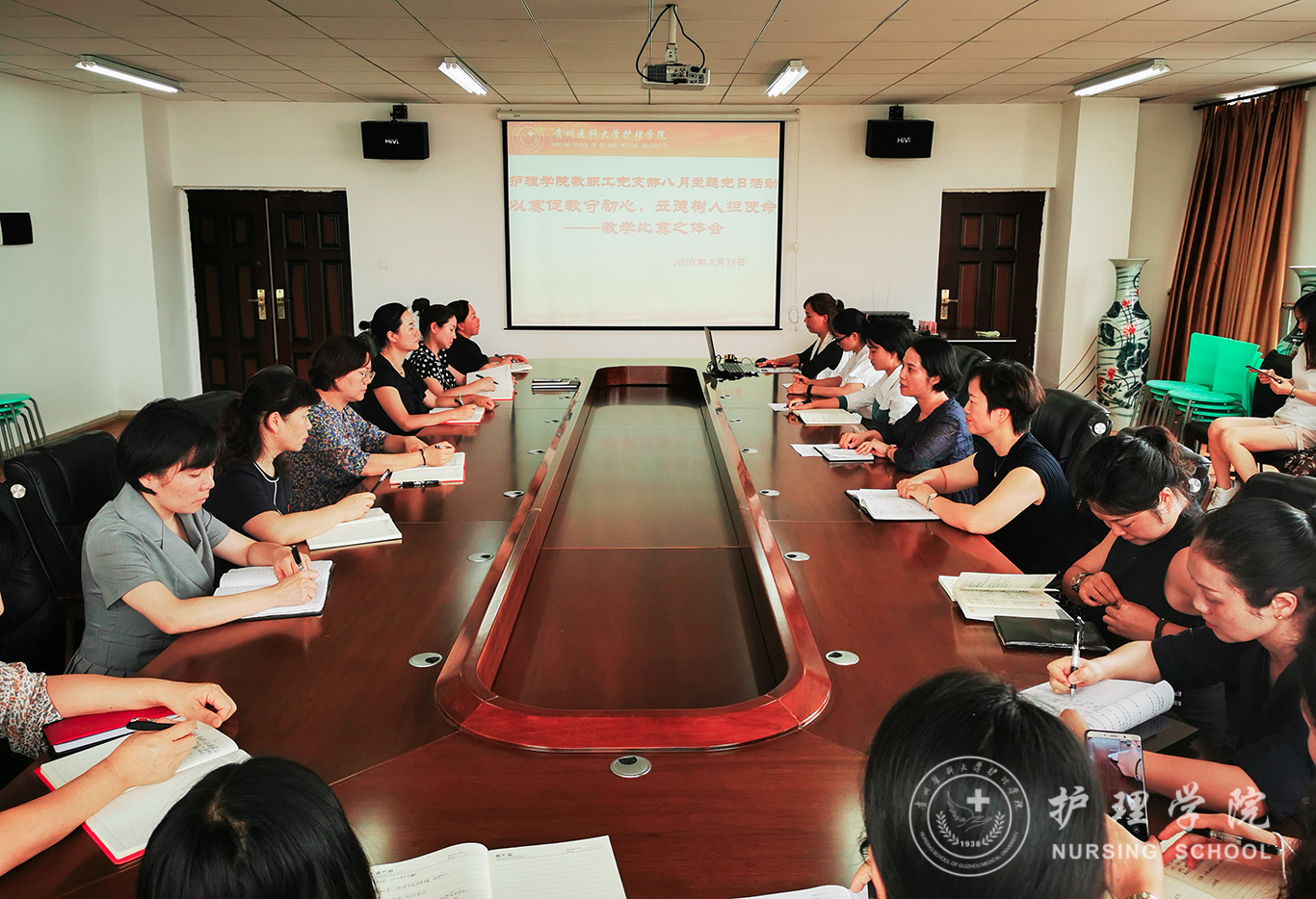 8月28日,公司教职工党支部在南校区百川楼会议室举行了“以赛促教守初心 立德树人担使命”的主题党日活动。外科护理学教研室青年教师马丽分享了参加贵州省护理学会遴选2020年第二届高等护理院校中青年教师授课比赛的体会。活动由教职工党支部书记张仁莉同志主持。
